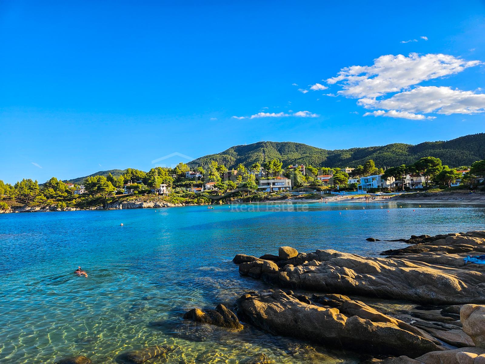 Наиболее знаменитый пляж на Ситонии, который иногда называют жемчужиной Ситонии – Кариди (Καρύδι). Вы увидите указатель на это пляж (съезд будет слева от дороги). Это небольшая бухта с длинным песчаным заходом и с морской водой необыкновенного перламутрового оттенка, окруженная красивейшими валунами светло-серого цвета причудливой формы.