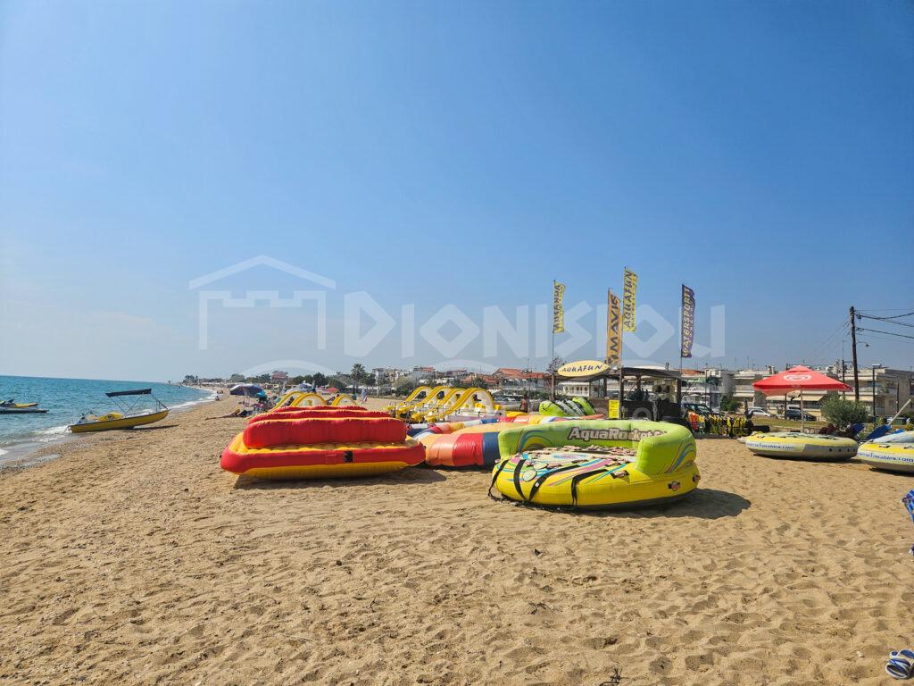Детям во Флогите тоже не будет скучно — в поселке есть большая детская площадка с надувными батутами (билет стоимостью 4 евро покупается только на ребенка, время пользования площадкой не ограничено). Со стороны Неа Плагья есть парк-аттракционов, предлагающий развлечения для детей различных возрастов.