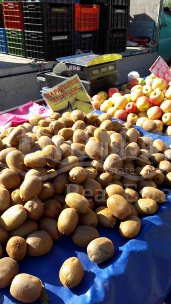 Клубника — 2 евро/кг, киви — 1 евро/кг, яблоки — 0.75 евро/кг, зелень — 0.50 евро/кг, цветная капуста и брокколи — 0.75 евро/кг, салат-шпинат — 0.75 евро/кг, вино домашнее — 5 л/10 евро.