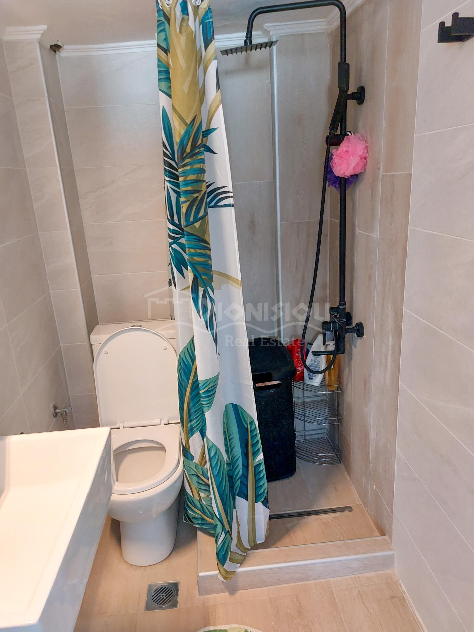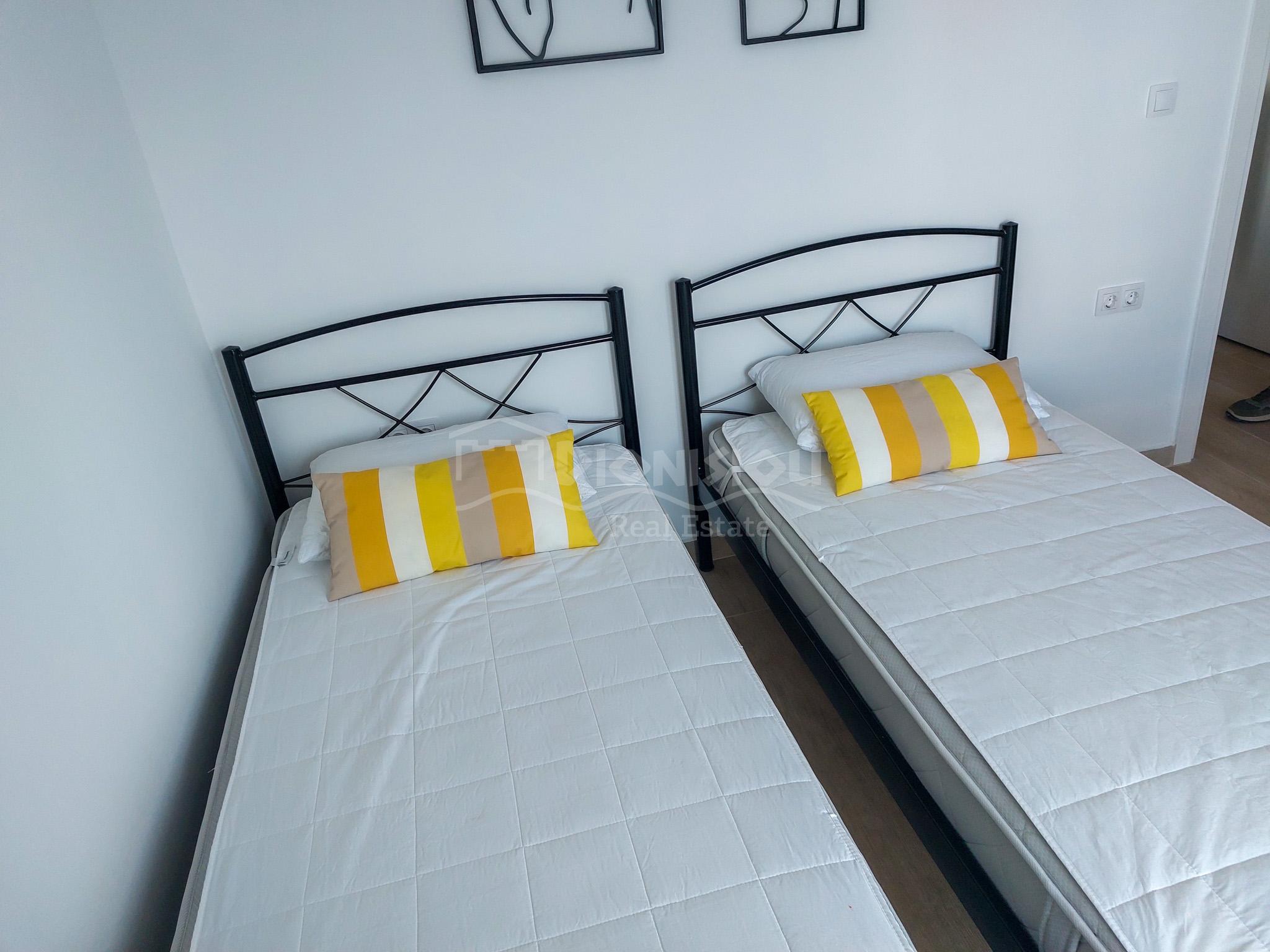 Апартамент находится на 3-ем этаже и состоит из гостиной с кухней, спальни, ванной комнаты и большого углового балкона с видом на море.