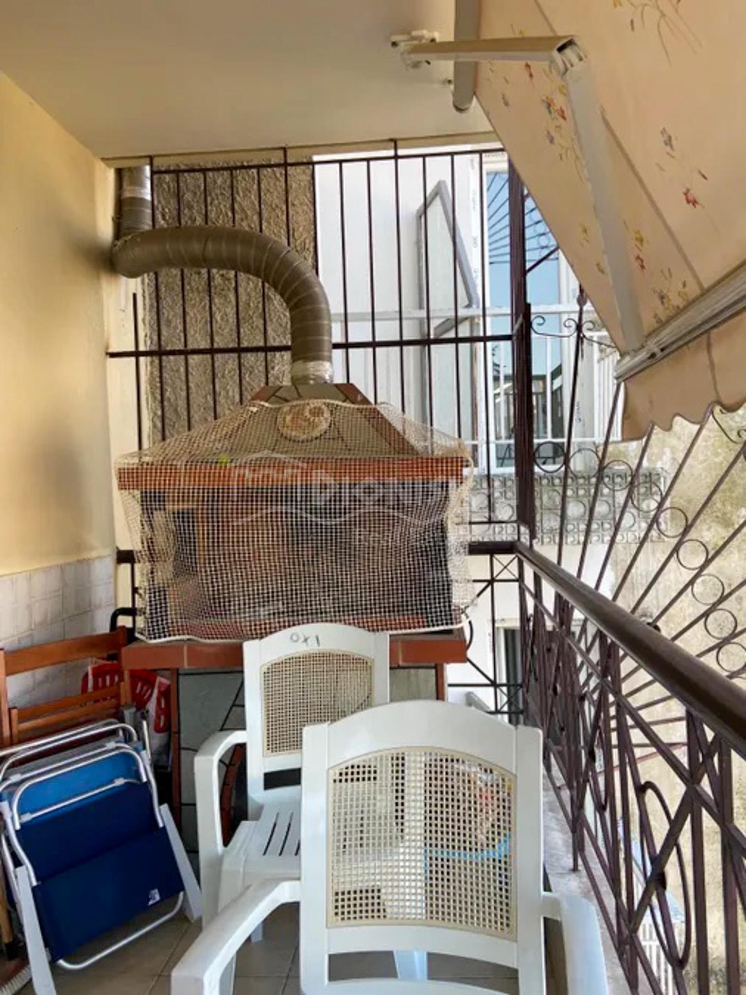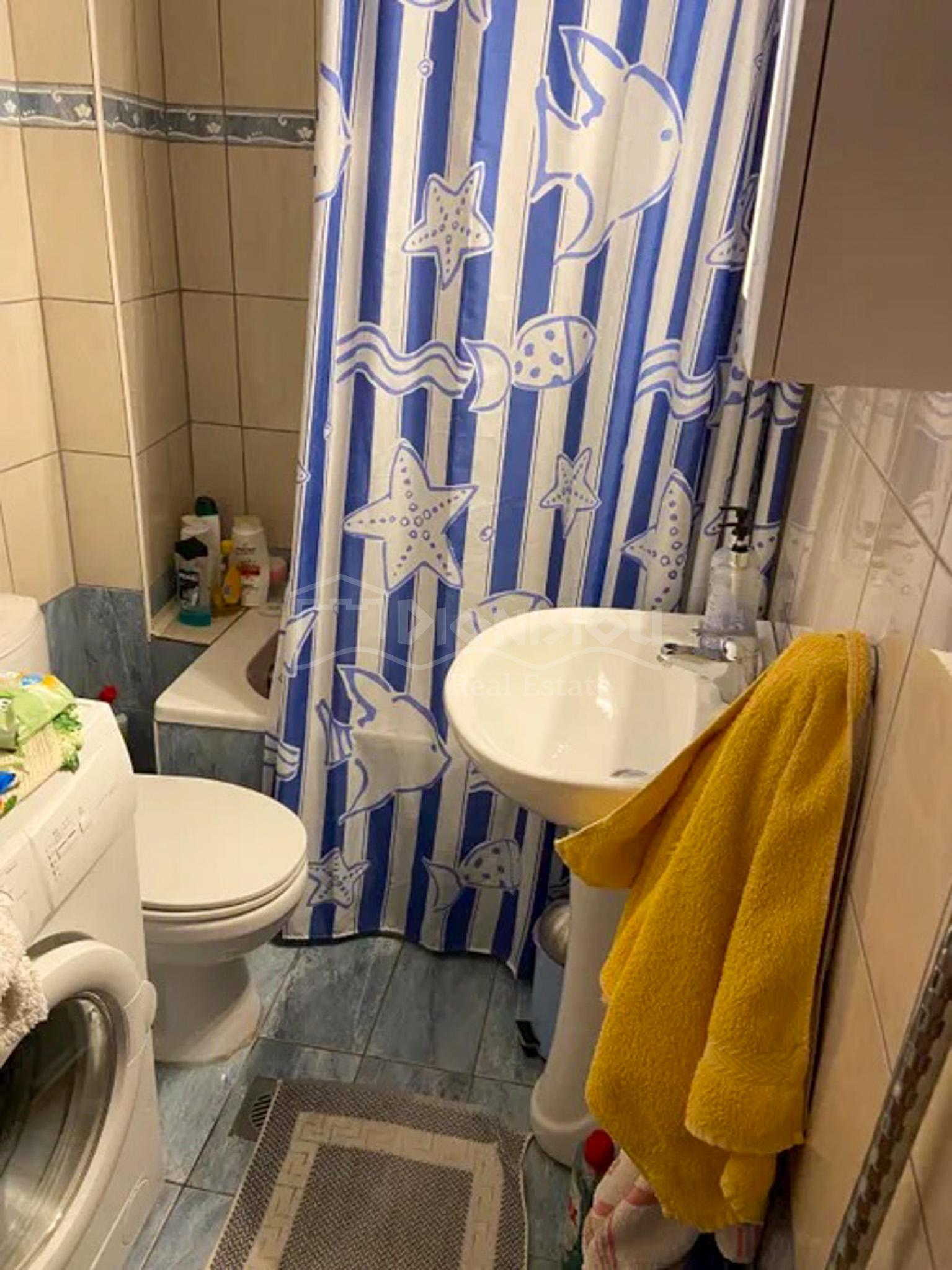 Квартира находится на 3-ем этаже и состоит из гостиной с кухней, спальни, ванной комнатой и 2-х балконов, один из которых с видом на море.