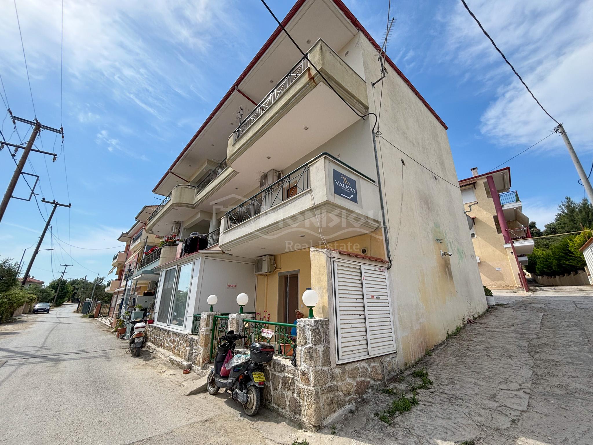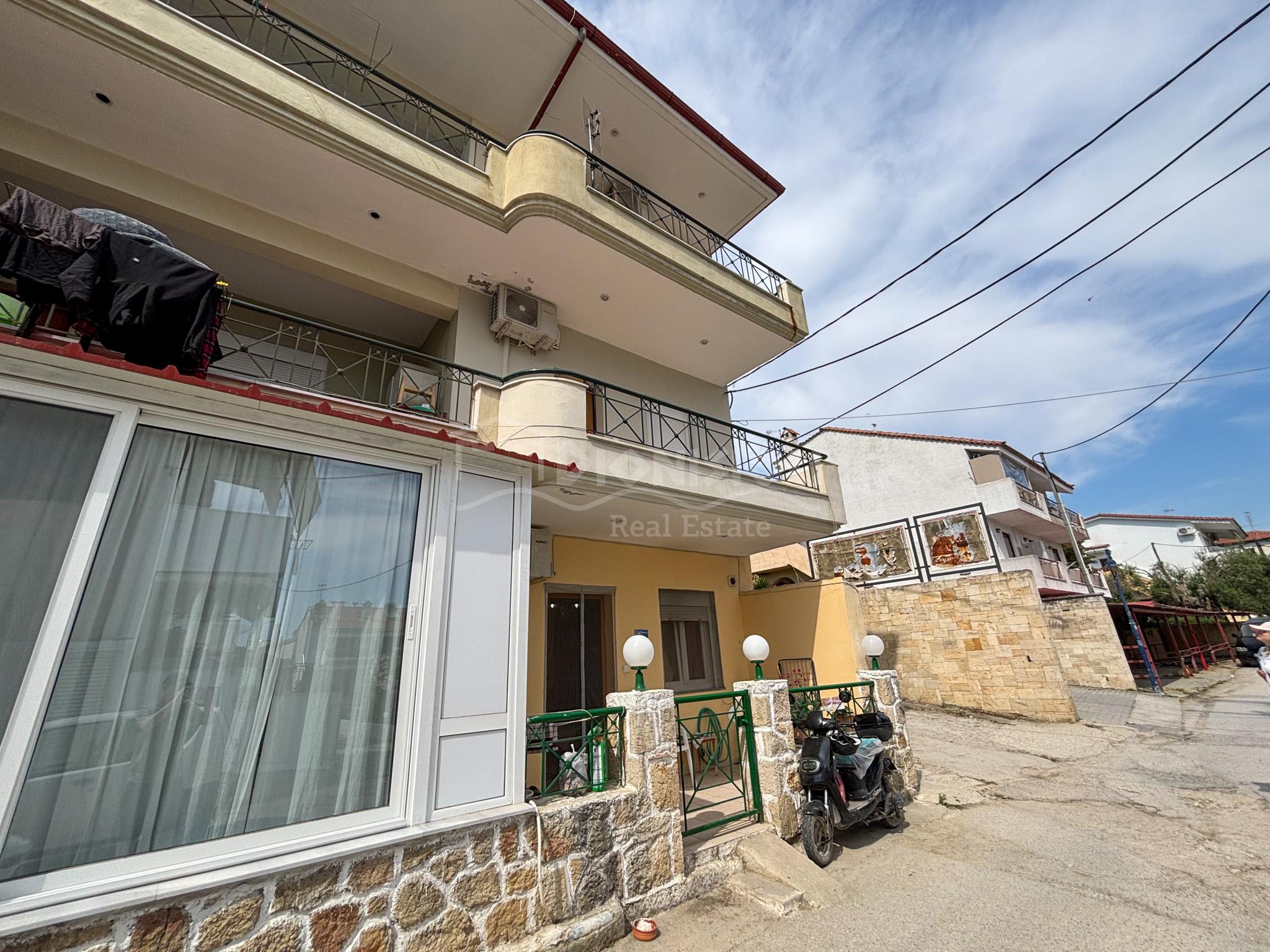 Квартира расположена в популярном туристическом поселке Певкохори в 600 метрах от прекрасного песчаного пляжа и в 100 метрах от старого центра поселка.