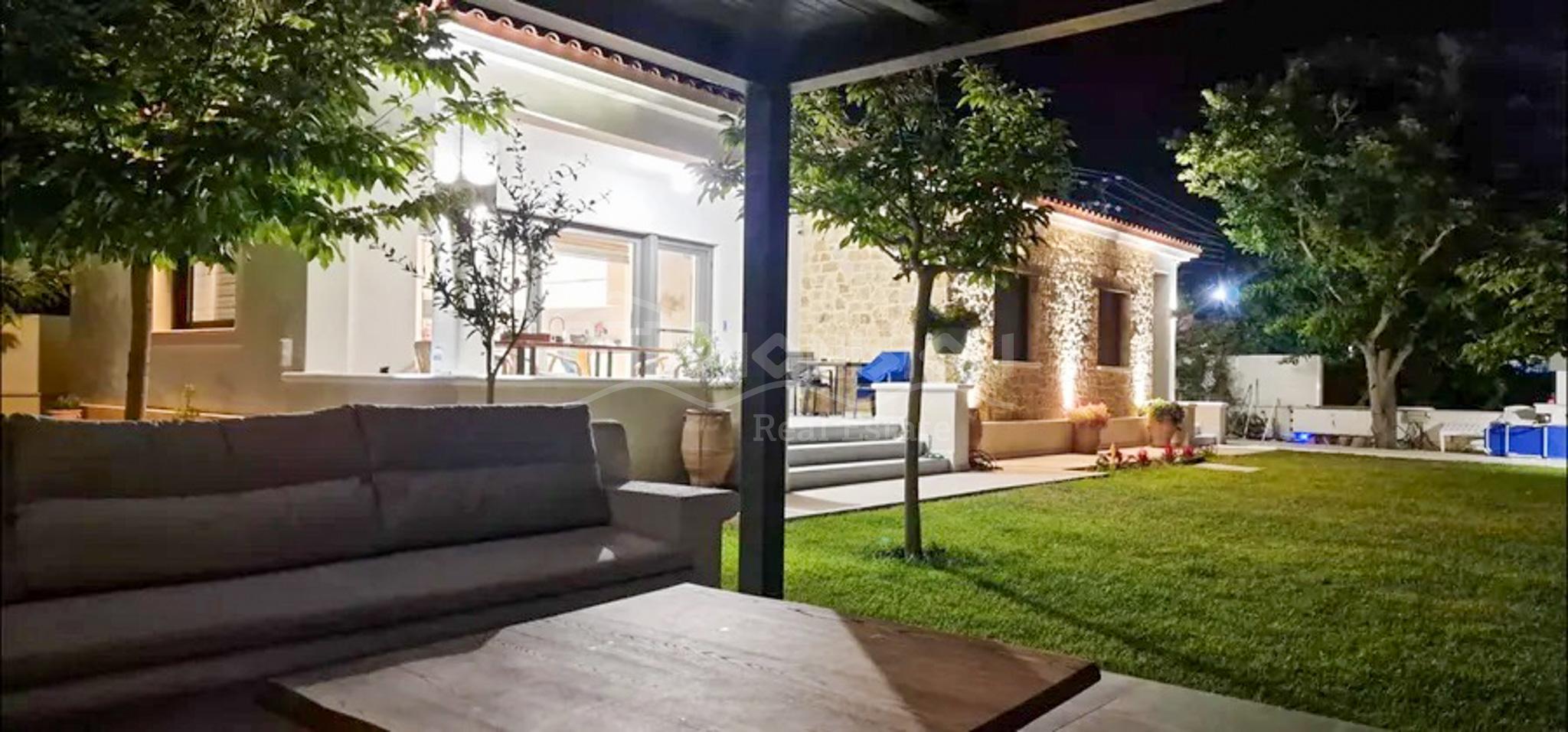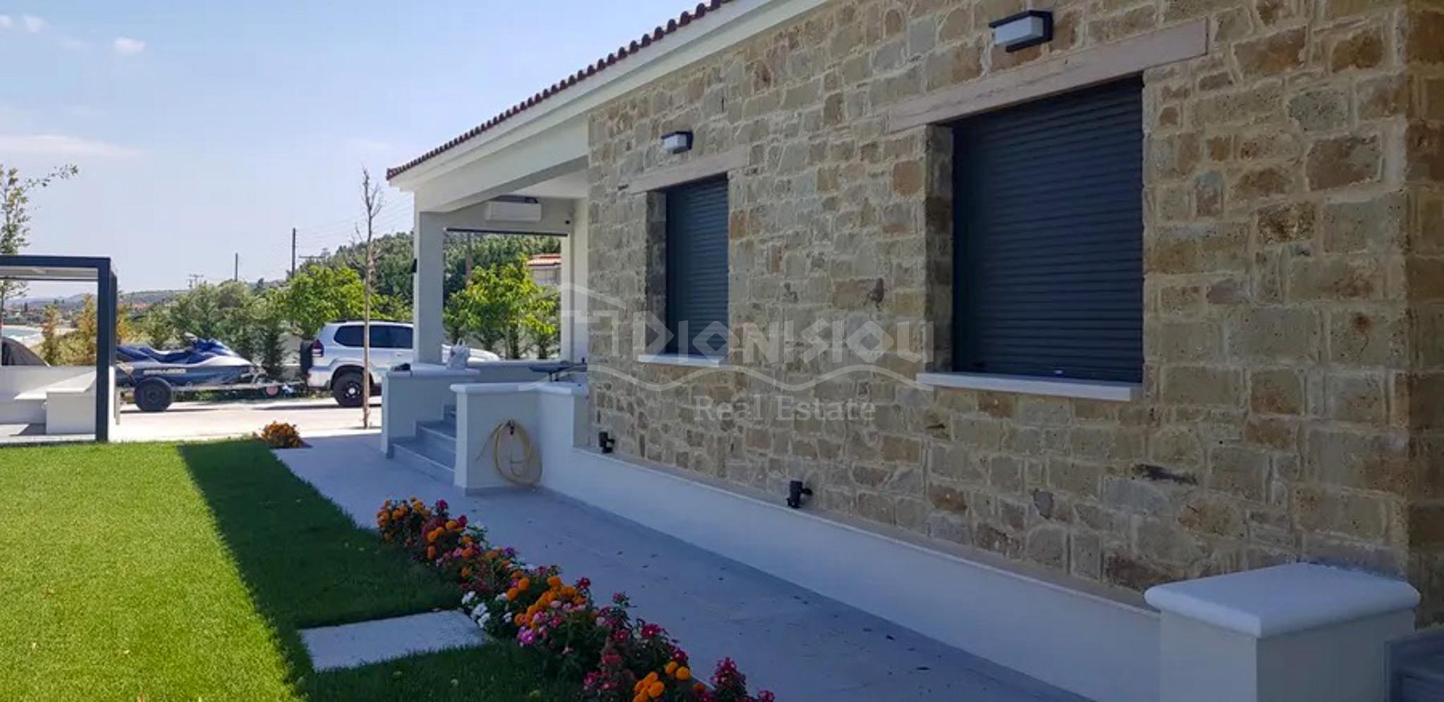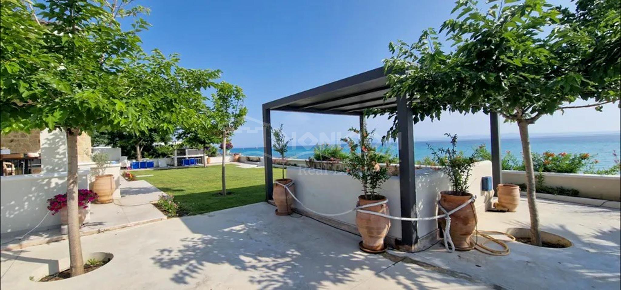 Вилла находится на 1-ой линии у прекрасного песчаного пляжа в окрестностях популярного туристического поселка Полихроно.
