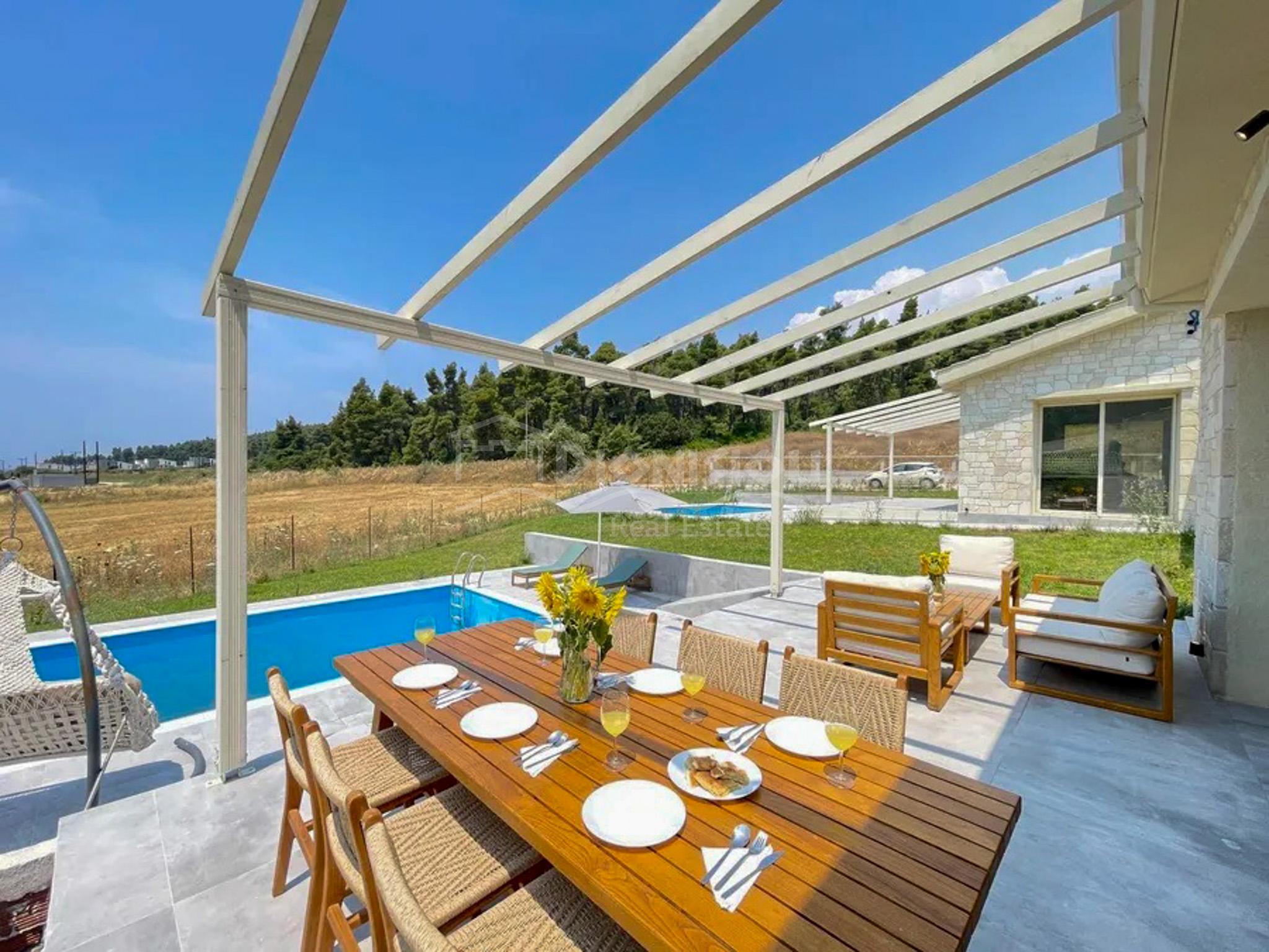 Роскошная вилла расположена в окрестностях Элани в окружении леса. В 800 метрах расположен пляж Chelona.