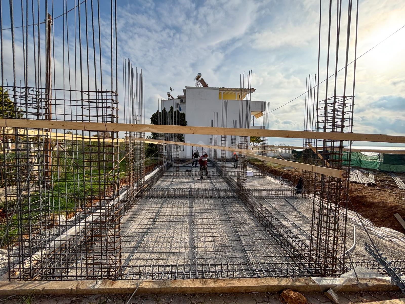 На 1-ом этаже располагается гостиная с кухней, туалетная комната и 2 веранды. На 2-ом этаже располагаются 2 спальни, ванная комната и балкон с потрясающим видом на море и гору Олимп.