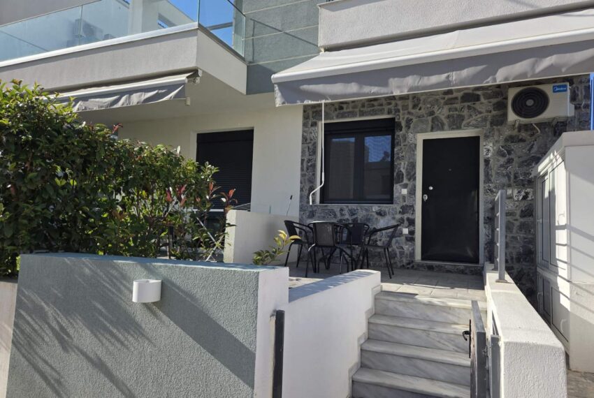 Квартира находится на 2-ом этаже и состоит из гостиной с камином и кухней, 2-х спален, ванной комнаты и балкона с видом море.