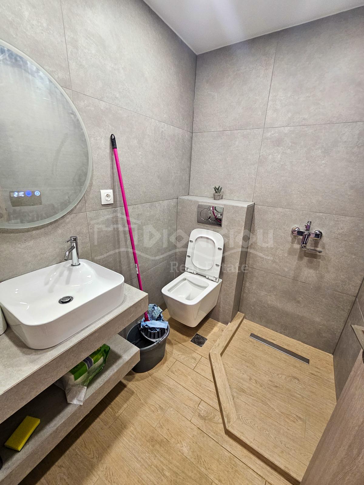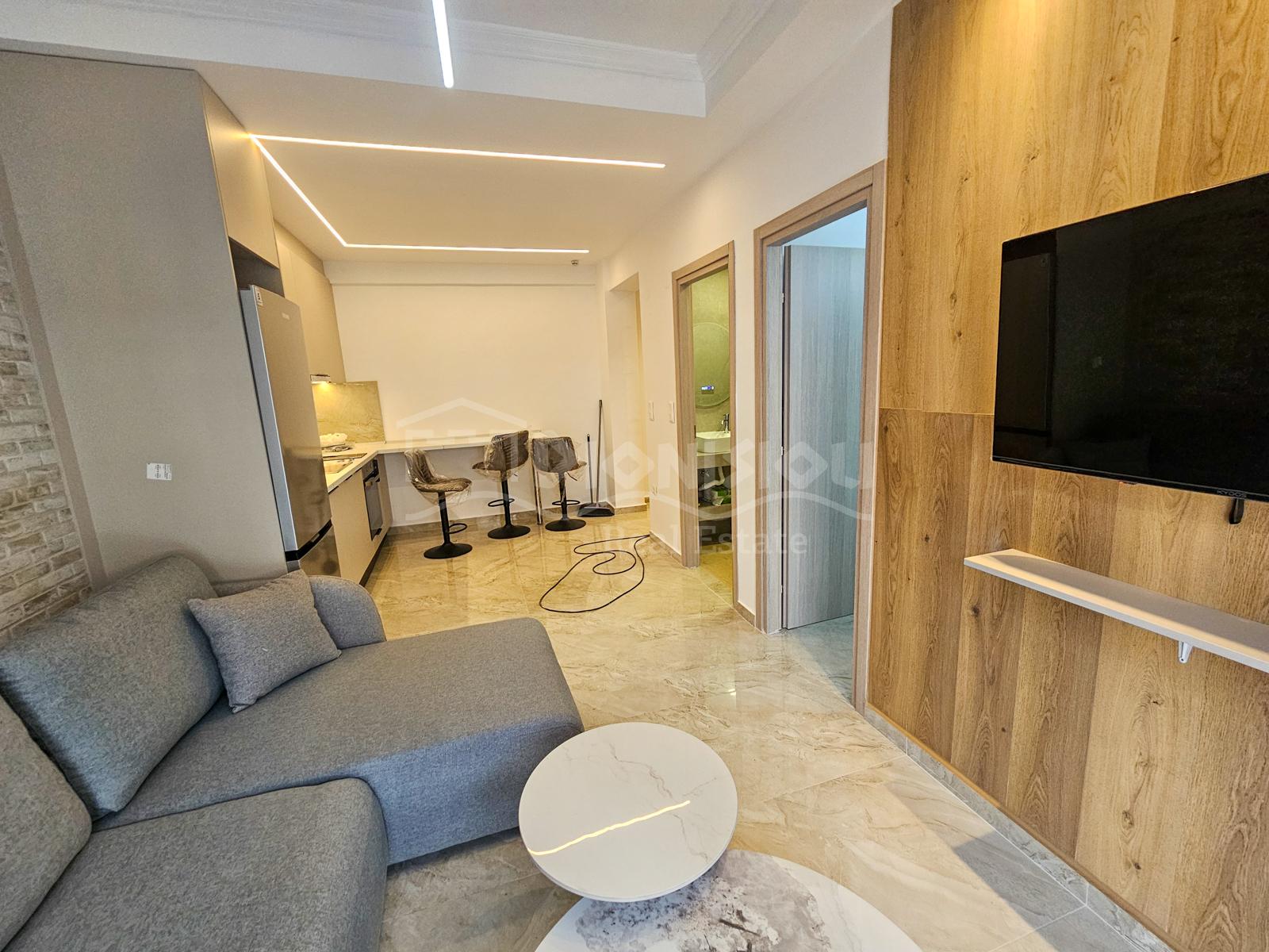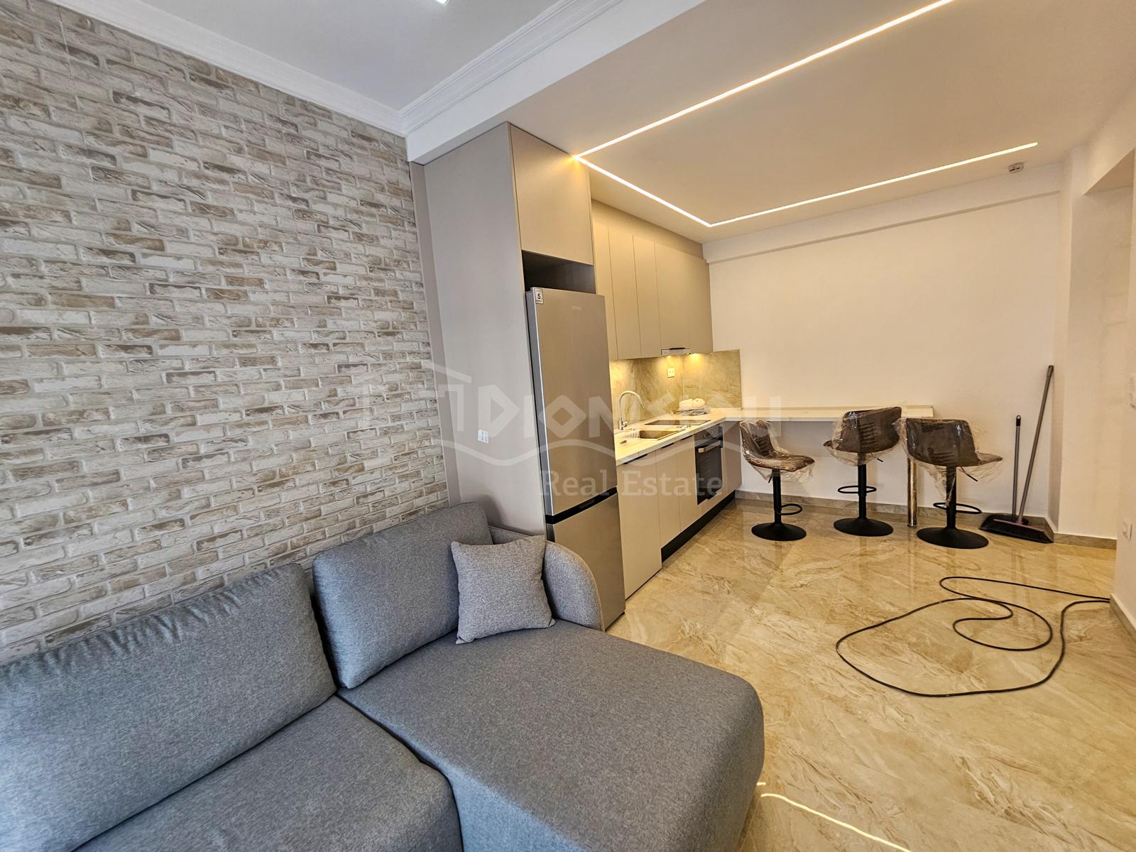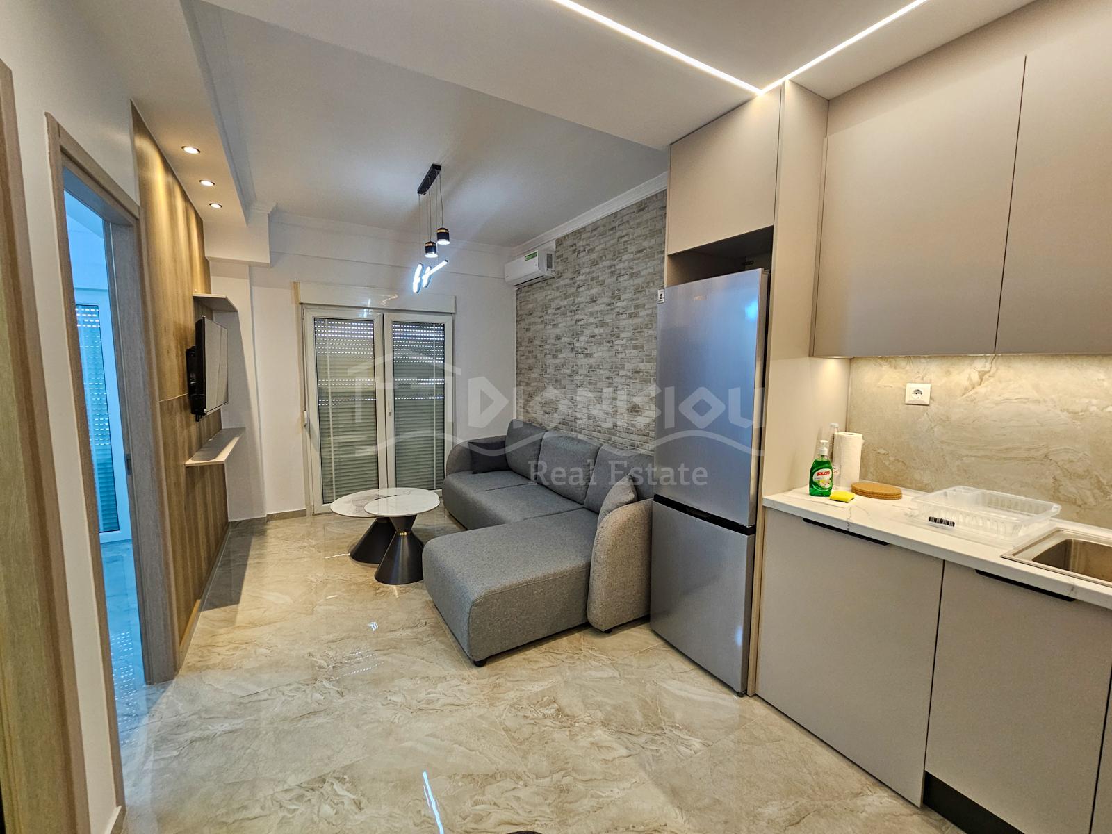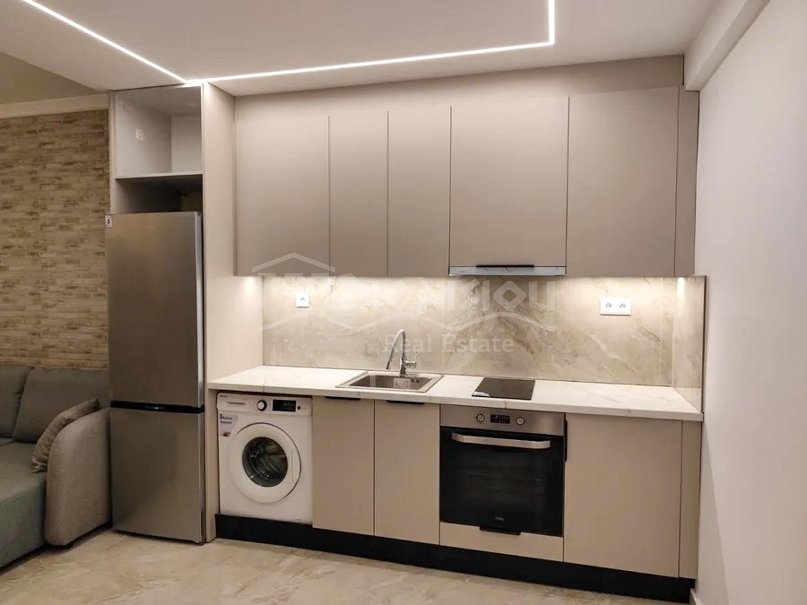 Квартира расположена на 1-ом высоком этаже и состоит из гостиной с кухней, спальни, ванной комнаты и балкона.