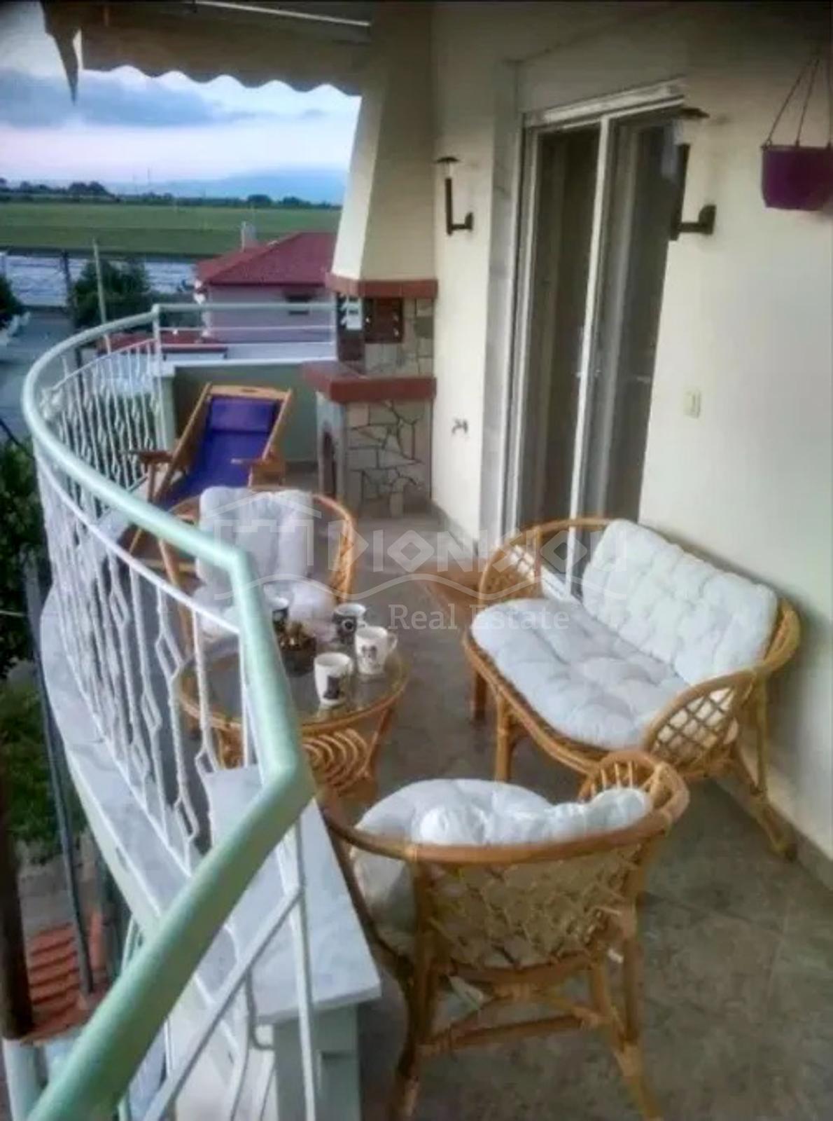 Апартамент расположны в популярном у жителей Салоник и Северной Греции поселке Флогита с широким песчаным пляжем и множеством таверн и пляжных баров в части поселка, где люди живут круглогодично, в 750 метрах от пляжа.