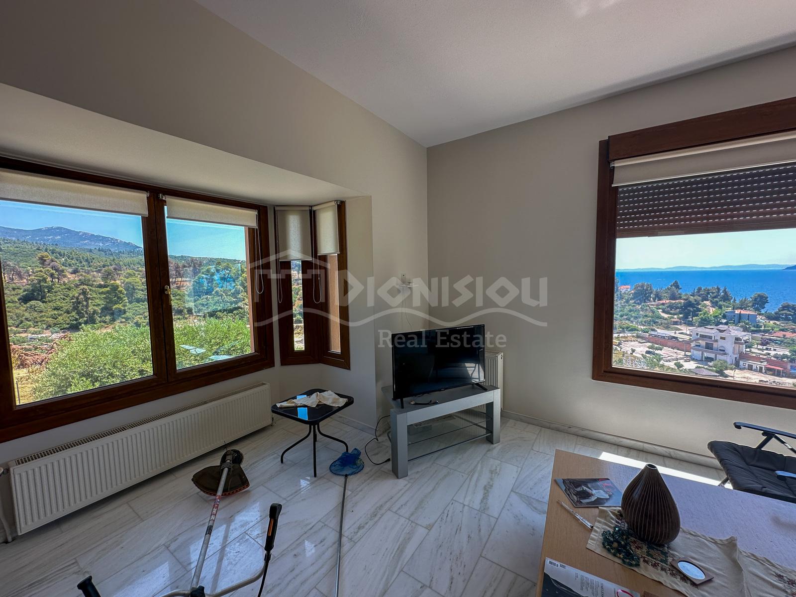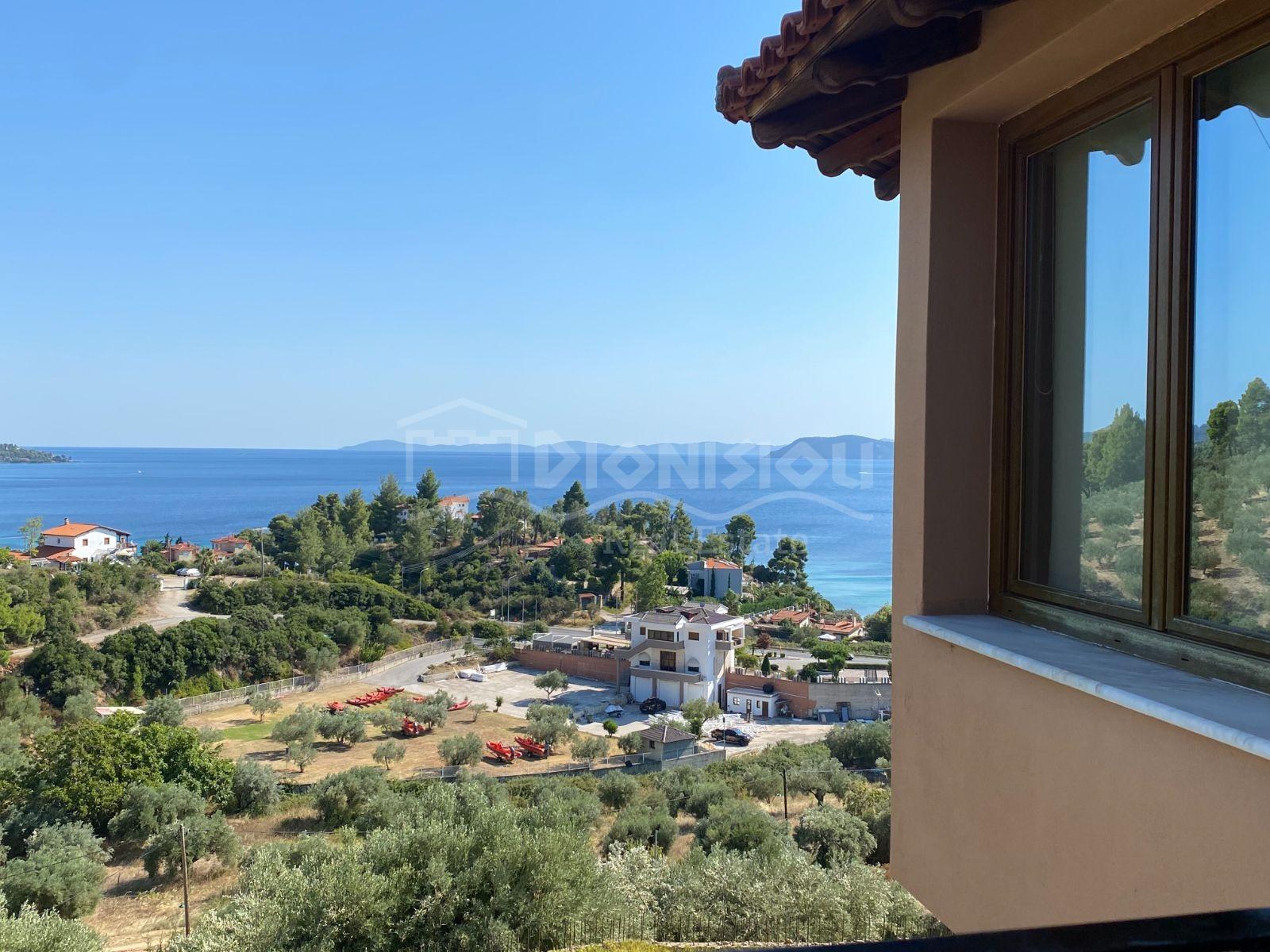 Вилла находится в окрестностях поселка Неос Мармарас на возвышении в 500 метрах от пляжа Трипотамос.