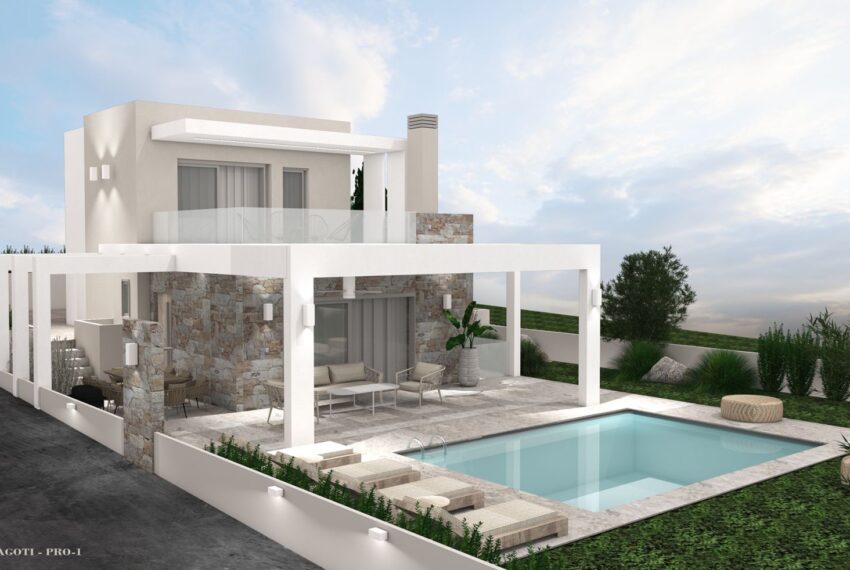 Вилла имеет собственный земельный участок 2000 кв. метров и бассейн.