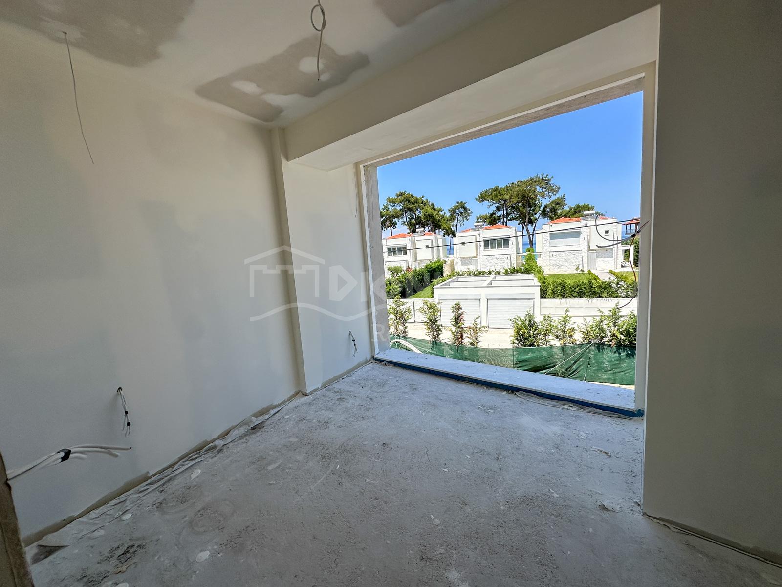 В виллах 3 этажа. На полуподвальном этаже расположены 2 спальни и ванная комната. На 1-ом этаже расположена гостиная с кухней и ванная комната. На 2-ом этаже расположены 2 спальни и ванная комната. В вилле есть гостевой апартамент площадью 60 кв. метров.