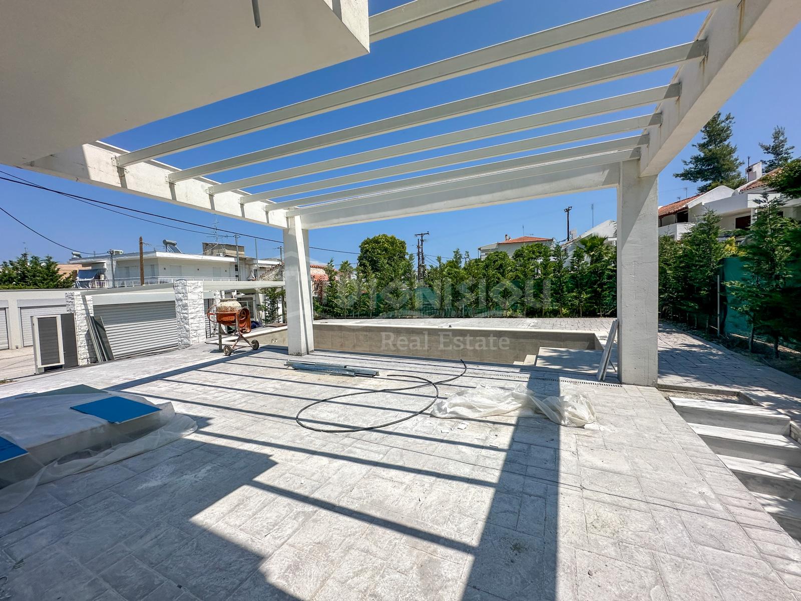 Роскошная вилла расположена в популярном оживленном туристическом поселке Ханиоти напротив шикарного пляжа, в 500 метрах от центра поселка и в 500 метрах от ближайшего супермаркета.