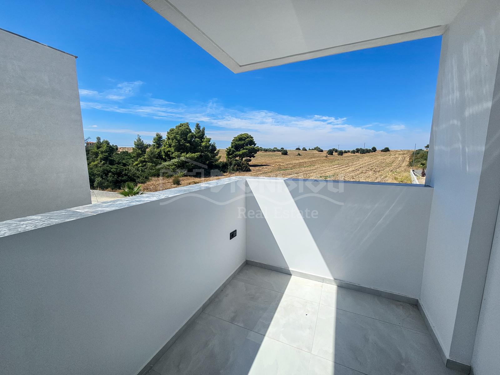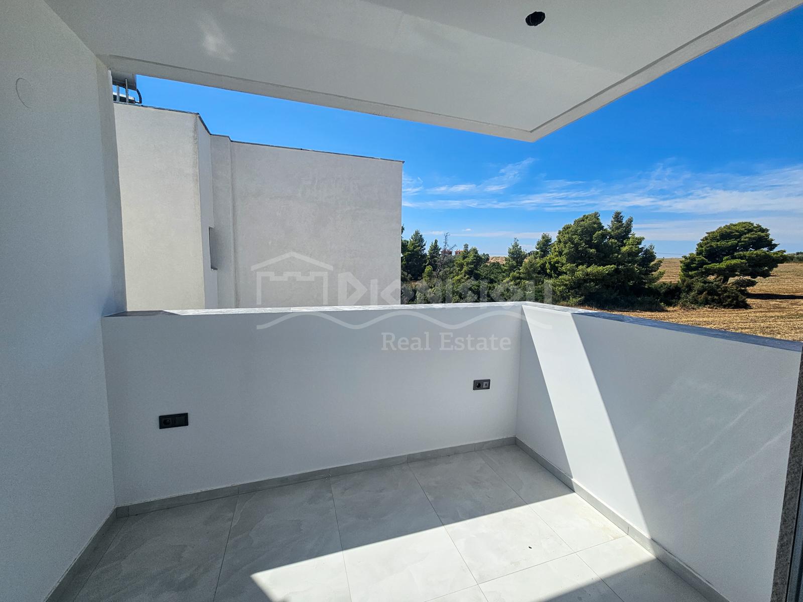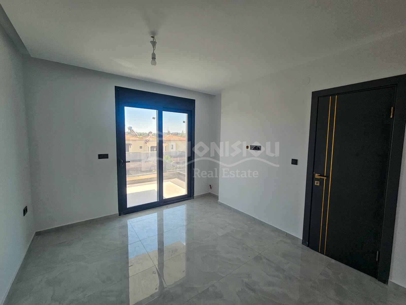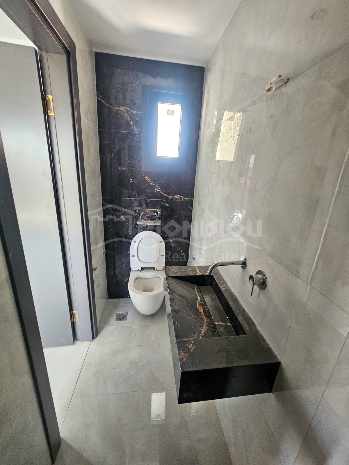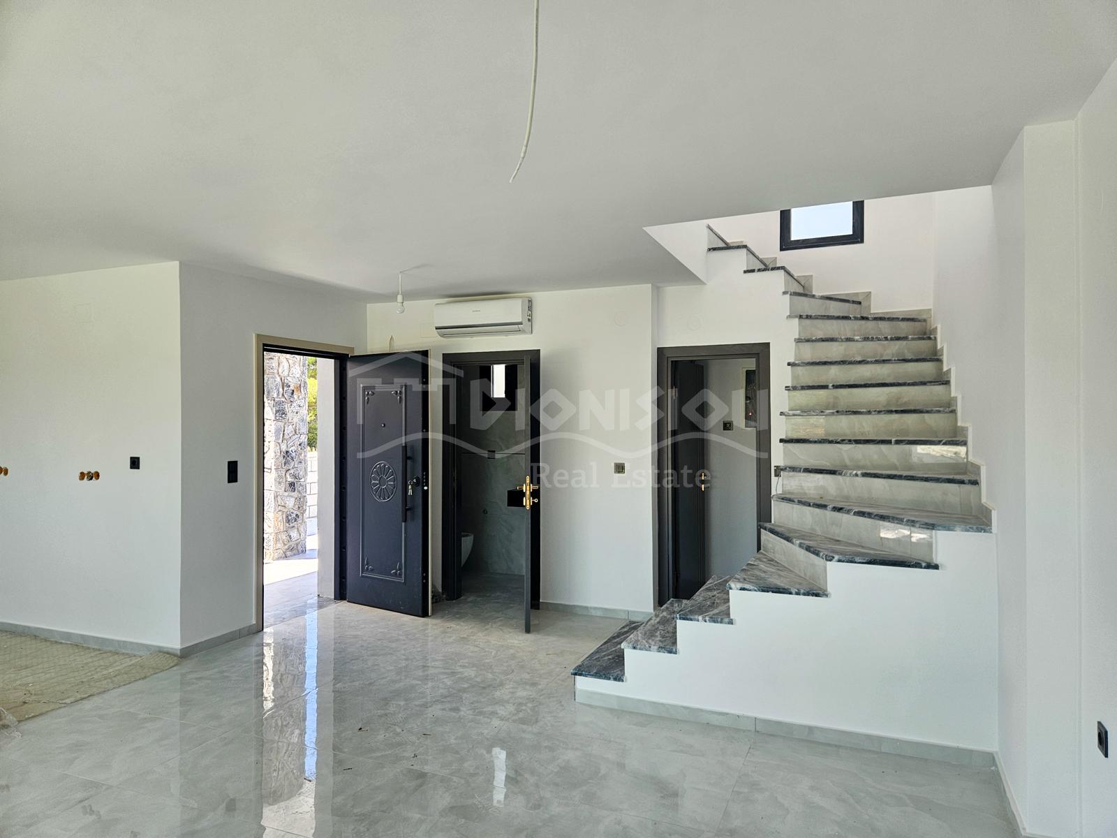 На 1-ом этаже находится гостиная с кухней, ванная комната, кладовая и веранда. На 2-ом этаже находятся 2 спальни с ванными комнатами, гостиная комната и 2 балкона. Существует возможность сделать 3-ью спальню.