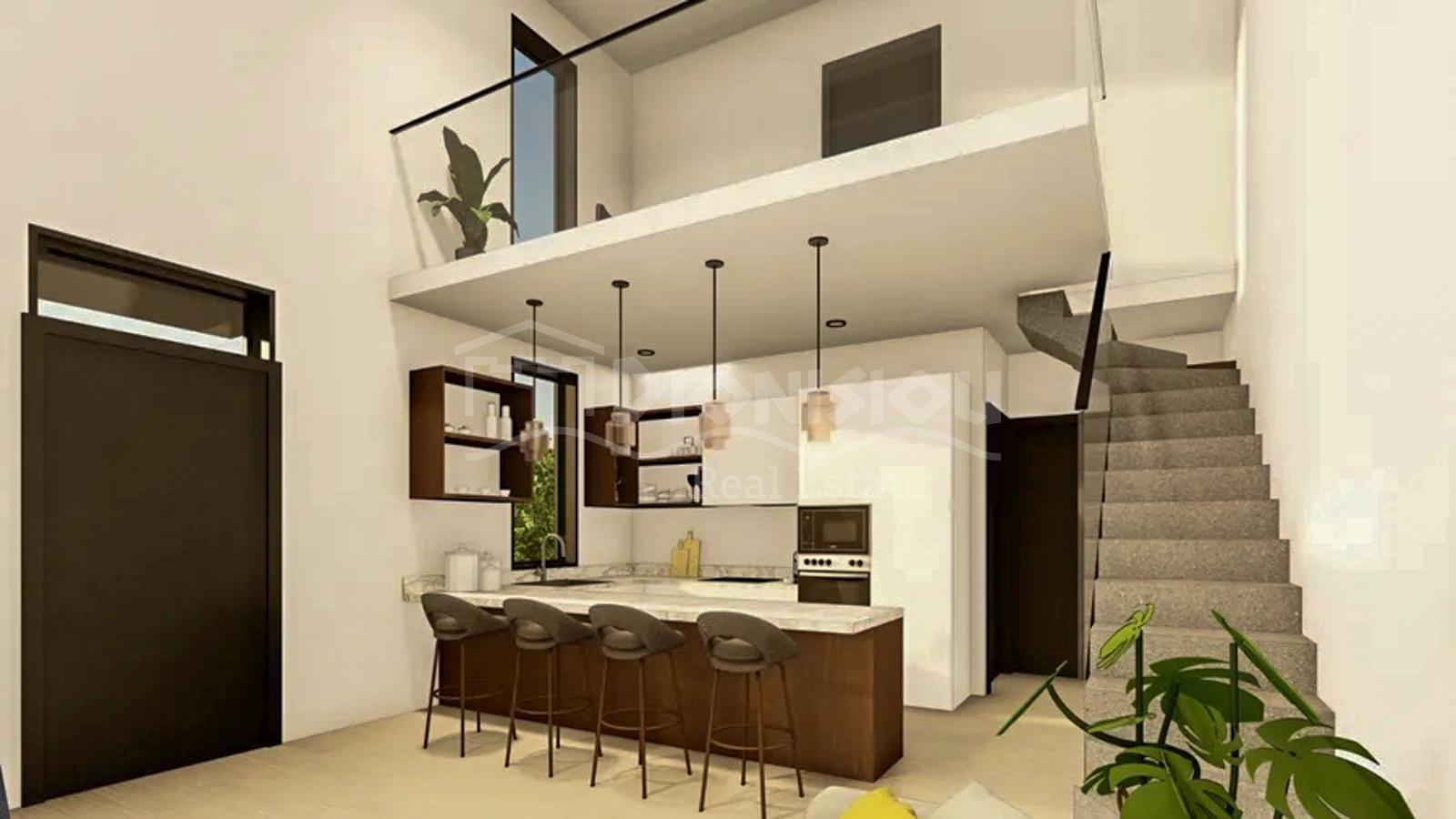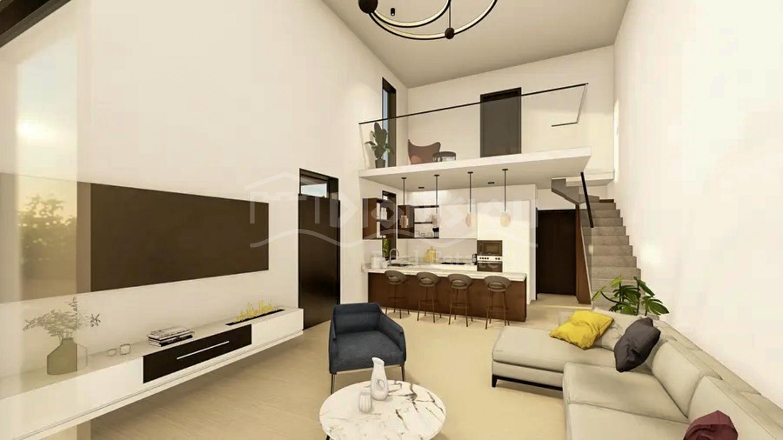 В домах 2 этажа. На 1-ом этаже находится гостиная с кухней, спальня, ванная комната и веранда с личным джакузи. На 2-ом этаже находится гостиная, спальня и ванная комната. Есть возможность обустроить 2-ю спальню на 2-ом этаже.