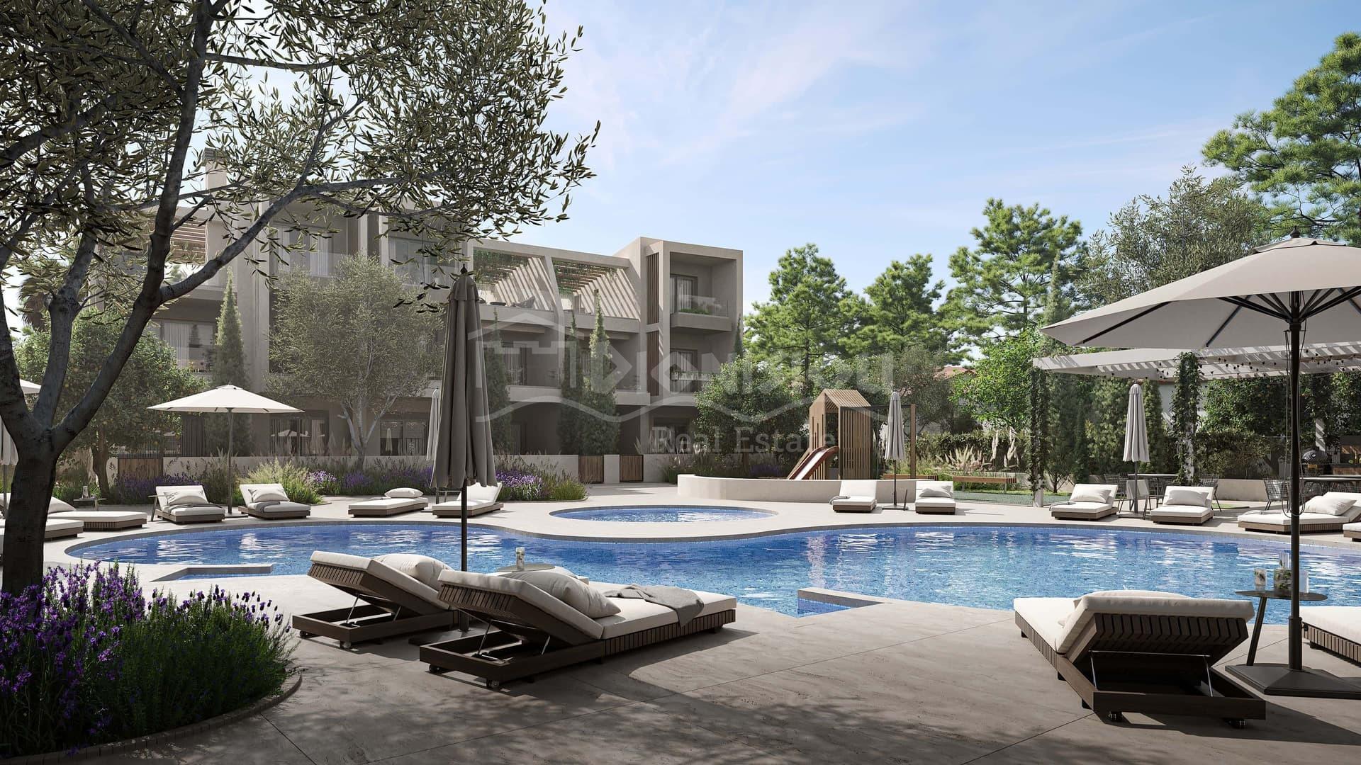 Комплекс находится в популярном туристическом поселке Никити всего в 100 метрах от пляжа и в близкой пешей доступности от инфраструктуры поселка.