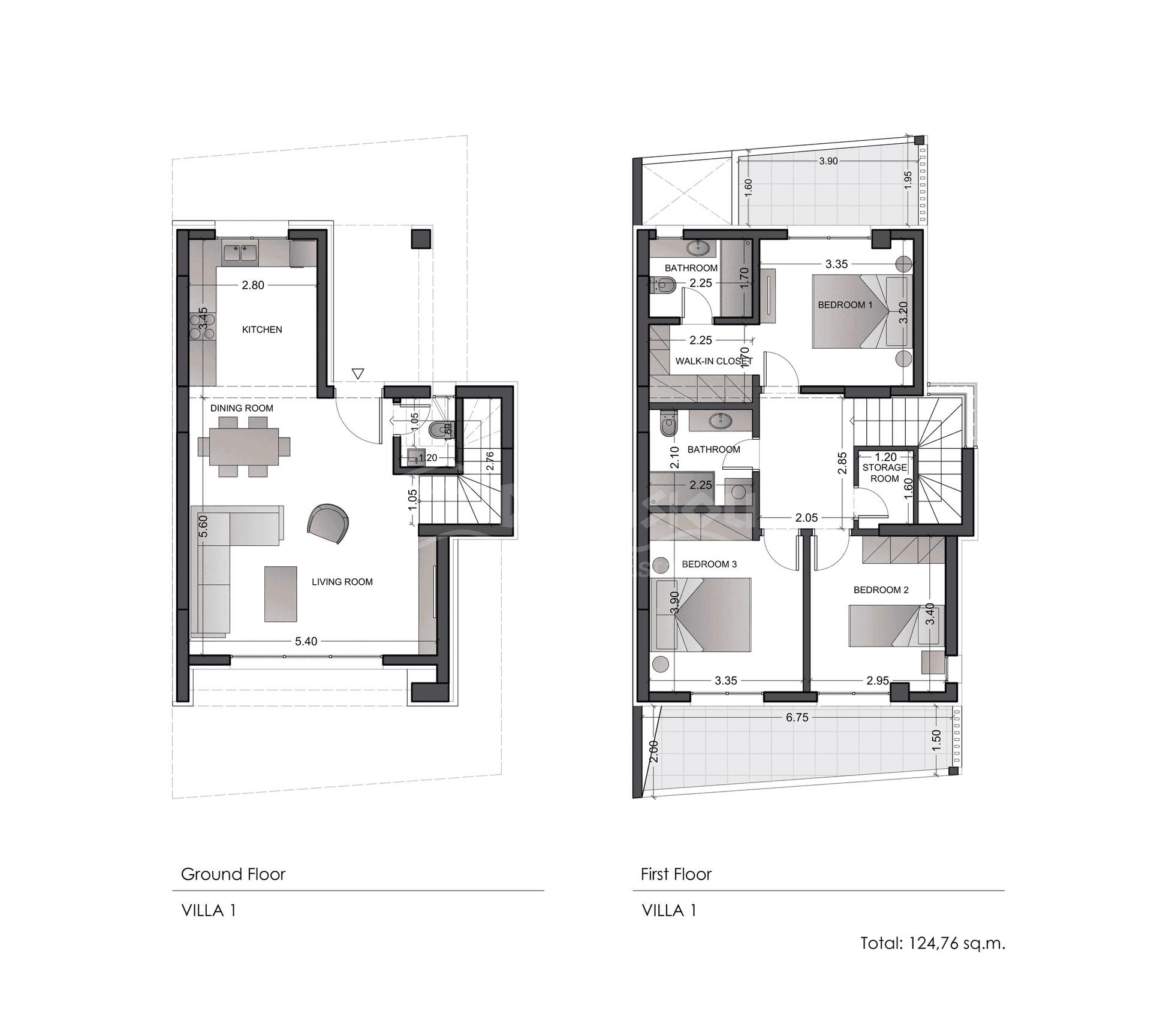 В виллах 2 этажа, и у них есть сад 113, 127 и 178 кв. метров (стоимость вилл соответственно 645 000, 670 000 и 720 000 евро).
