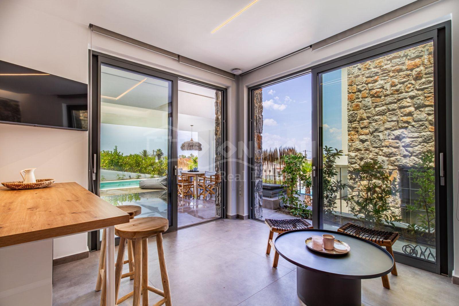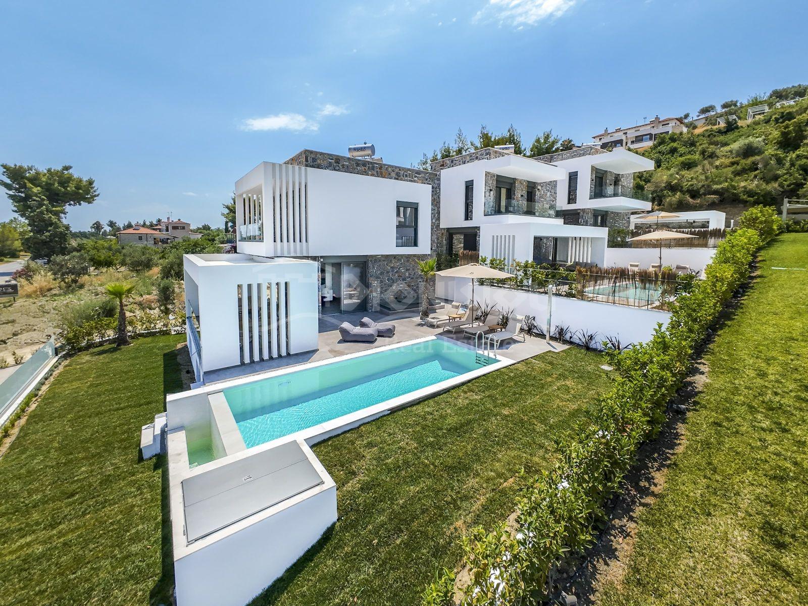 Роскошные виллы расположены в окрестностях популярного туристического поселка Певкохори в 400 метрах от шикарного пляжа.