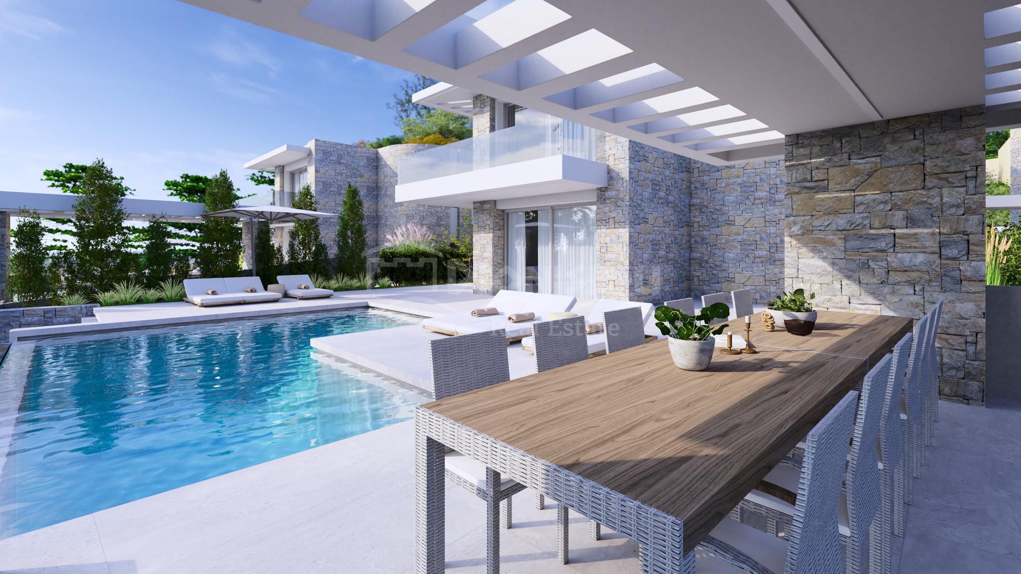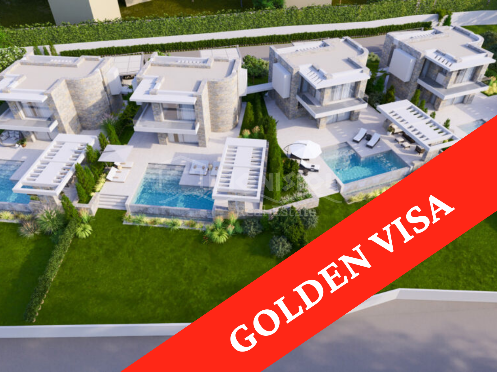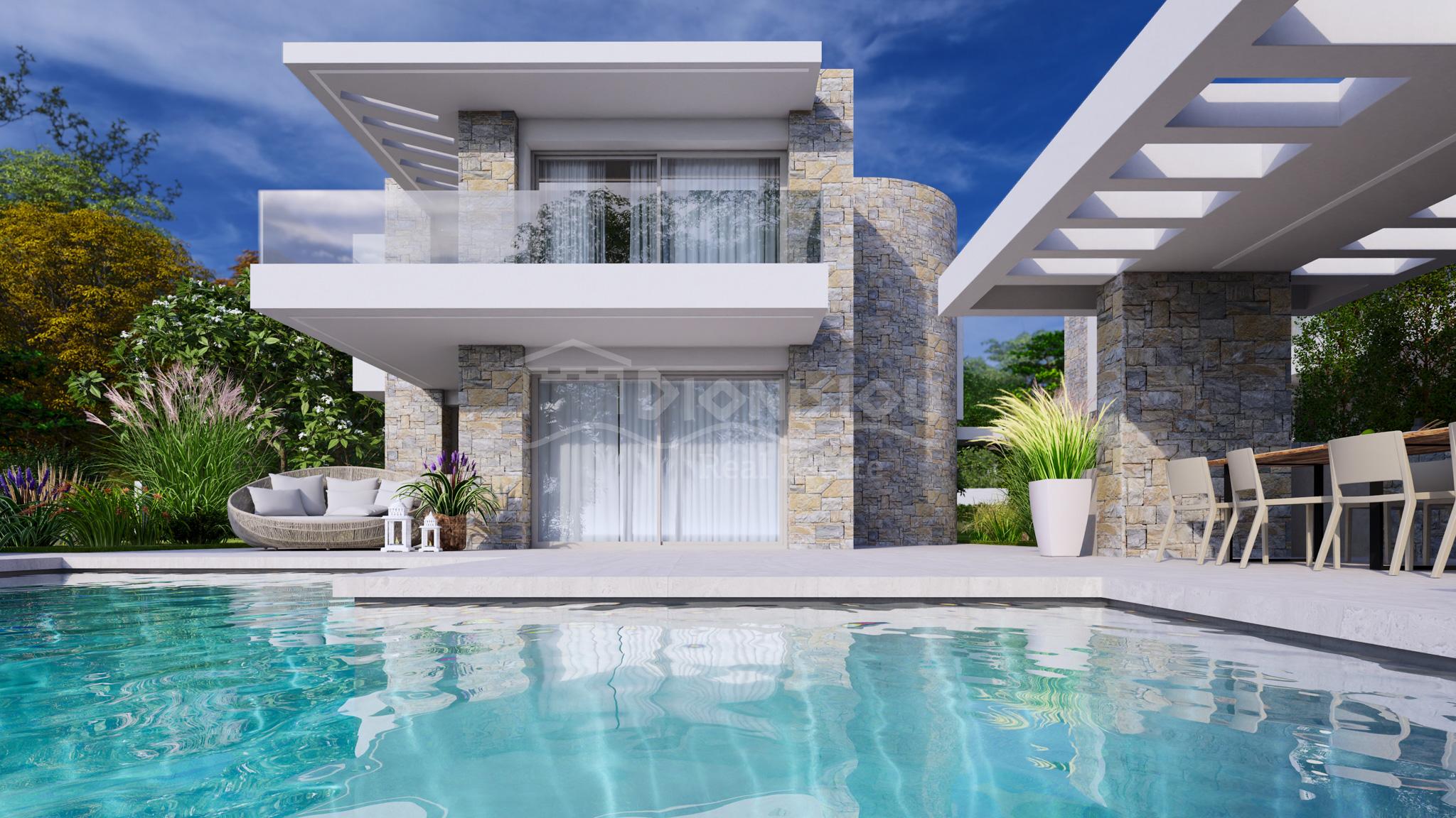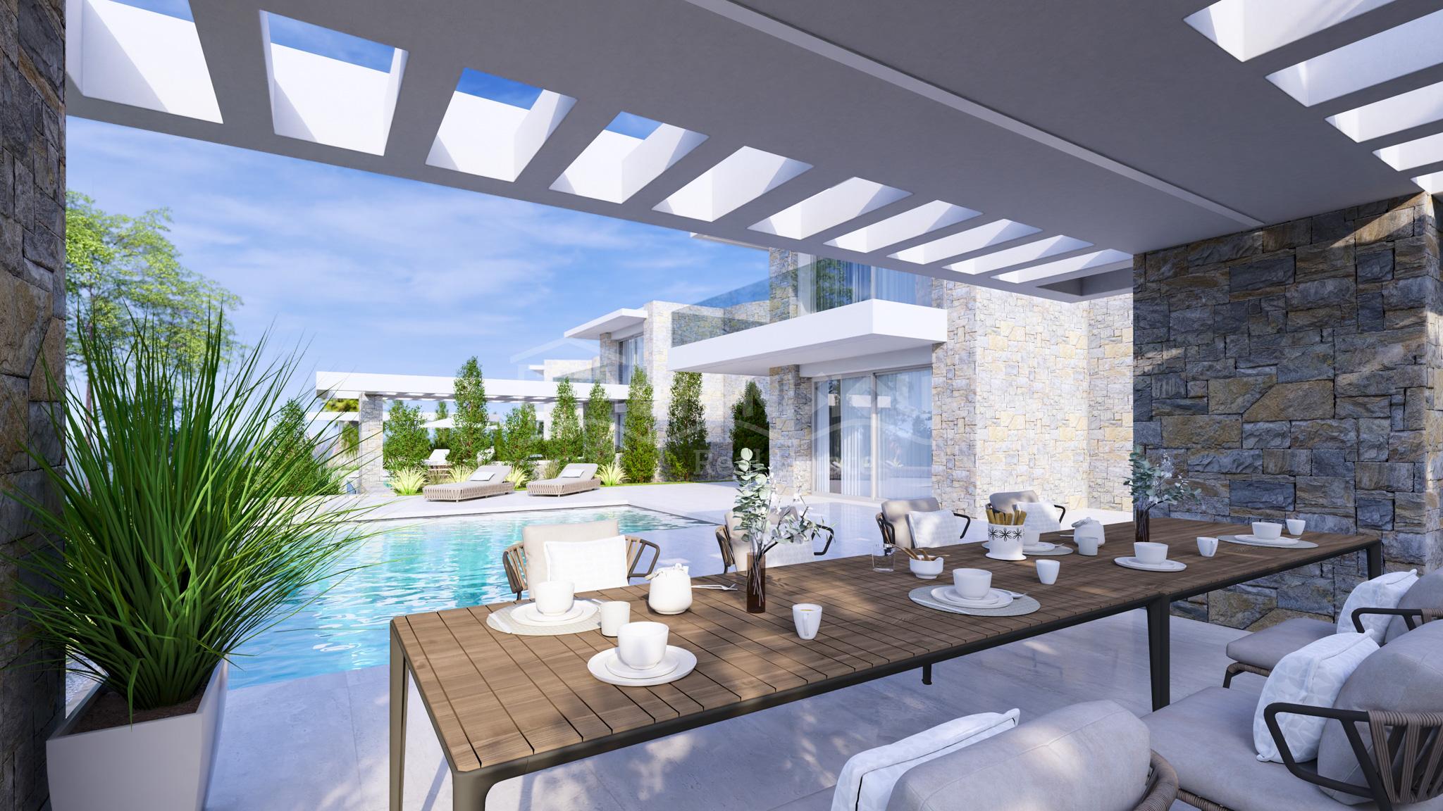 К продаже предлагаются 4 эксклюзивных виллы площадью 190 кв. метров с земельными участками 1.276 кв. метра (вилла 1), 694 кв. метров (вилла 2), 655 кв. метров (вилла 3) и 1.087 кв. метров (вилла 4). У вилл есть собственный бассейн.