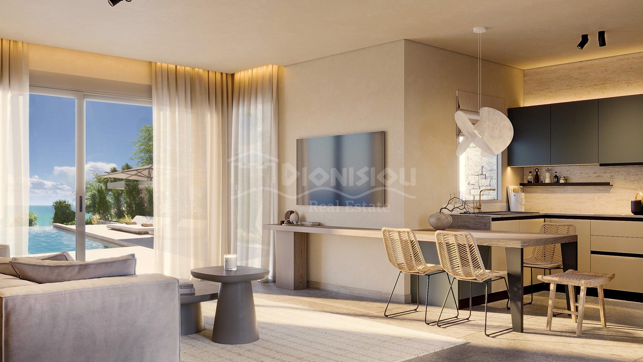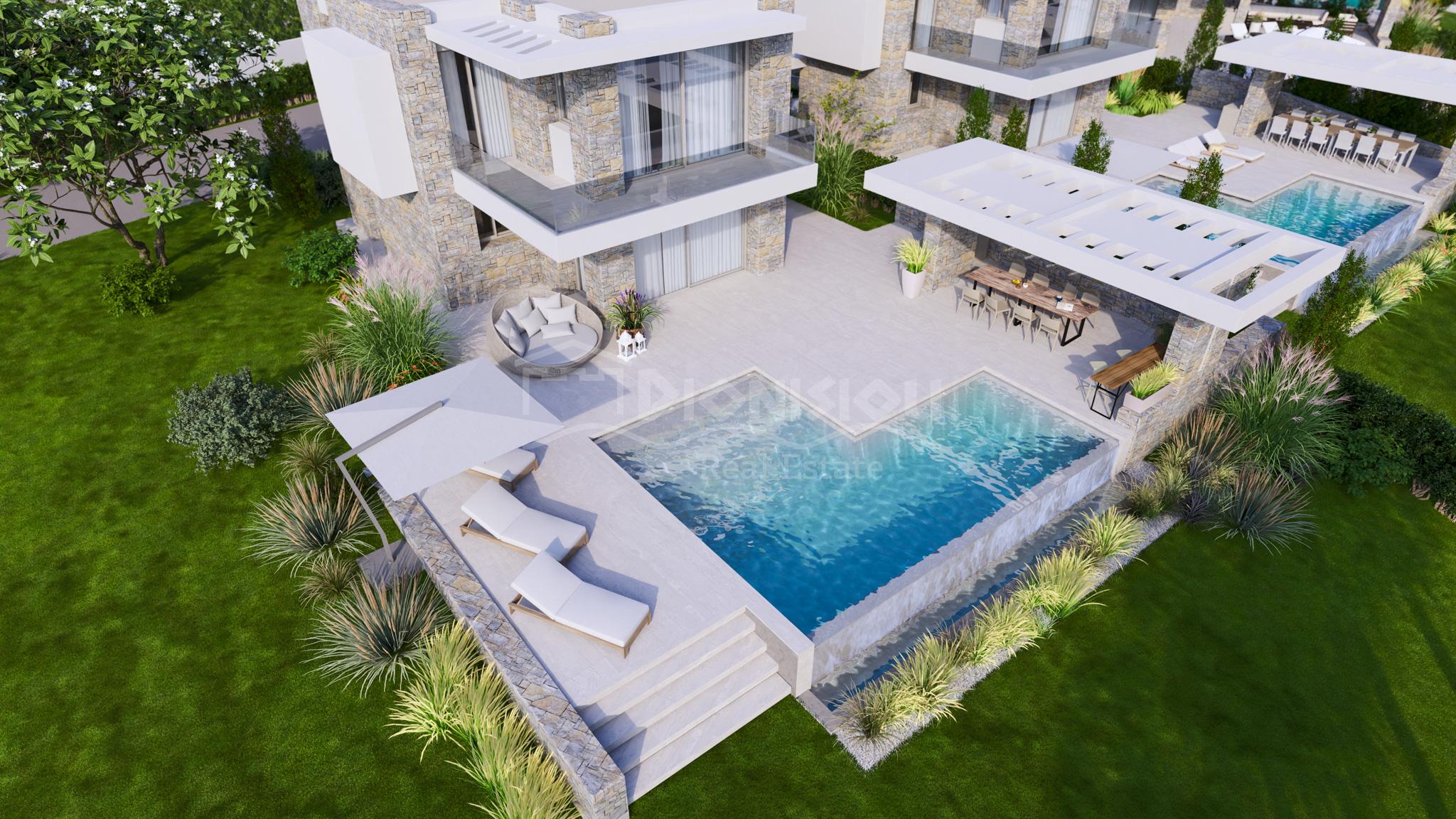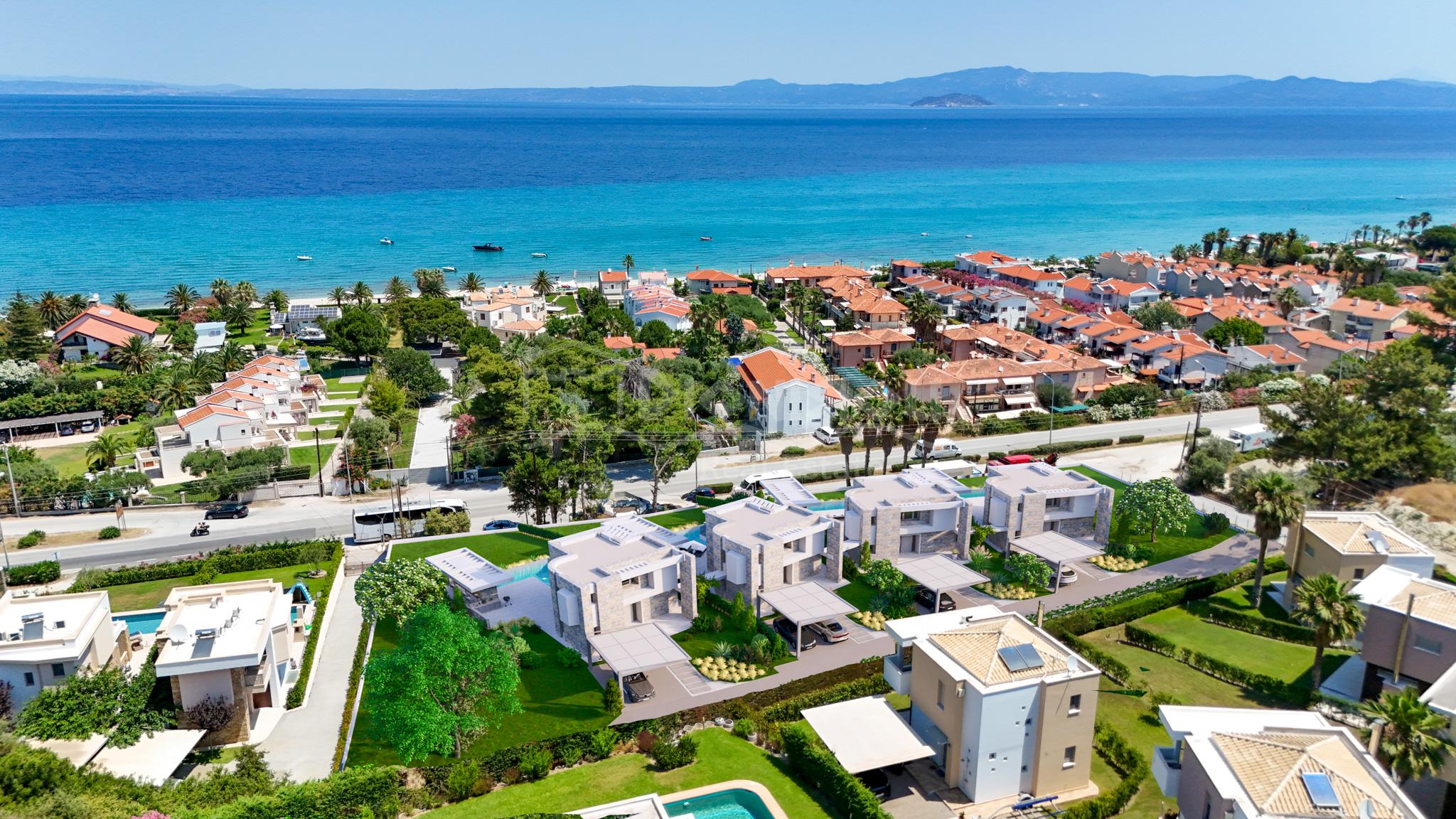Роскошные виллы расположены в популярном туристическом поселке Певкохори всего в 200 метрах от шикарного пляжа.