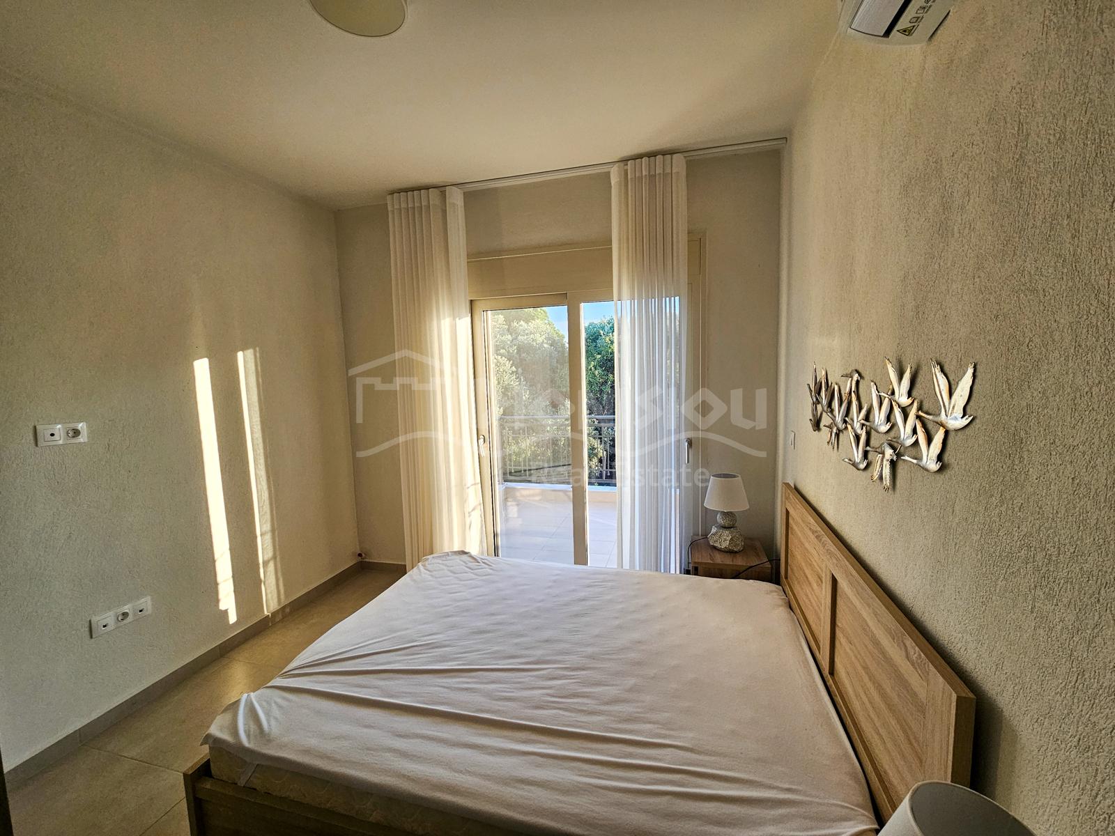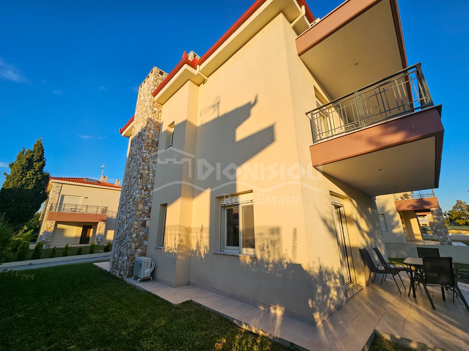Дом находится в окрестностях поселка Калликратия в 200 метрах от пляжа и имеет вид на море.