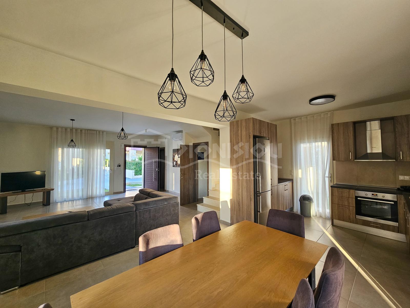 На 1-ом этаже дома находится просторная гостиная, кухня, туалетная комната и кладовая. Перед домом и сзади дома — веранды. На 2-ом этаже находятся 3 спальни и 2 ванных комнаты. Одна из спален имеет собственную ванную комнату и гардеробную. С 2 сторон от дома — балконы. На 3-ем этаже (мансардном) находится необорорудованное помещение 40 кв. метров, которое может быть превращено в еще одну или 2 спальни.