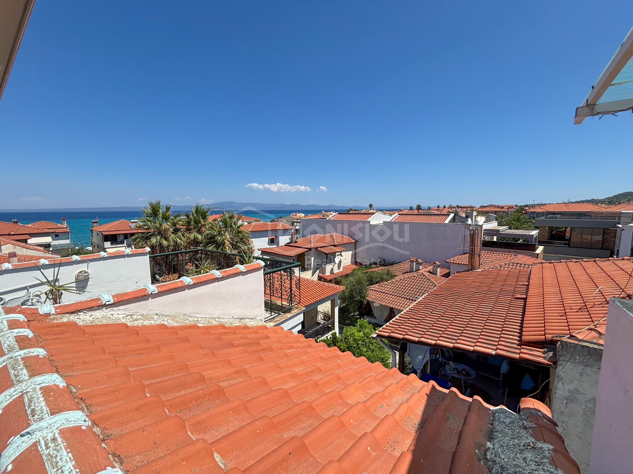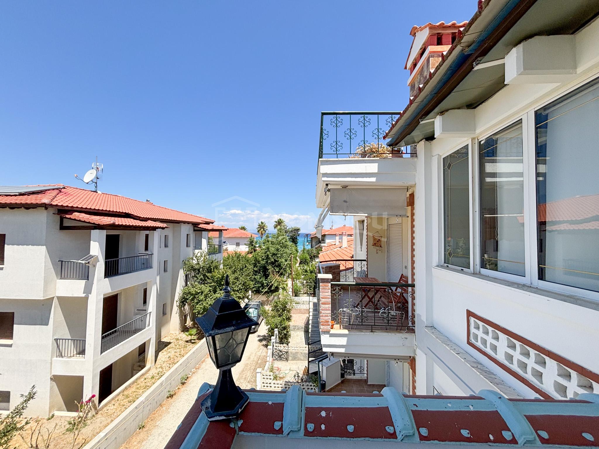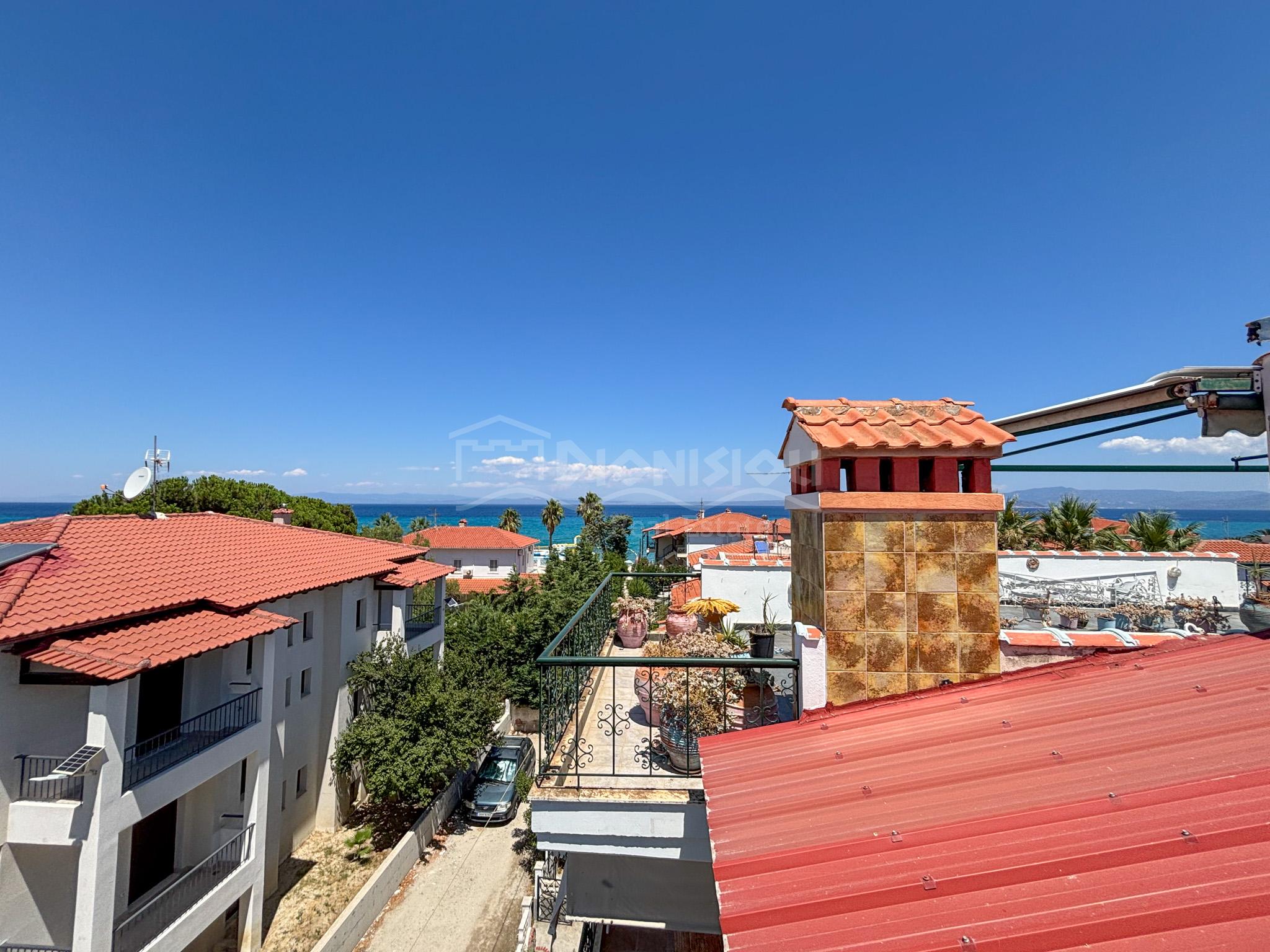 Дом находится в центре поселка Певкохори всего в 150 метрах от прекрасного пляжа.