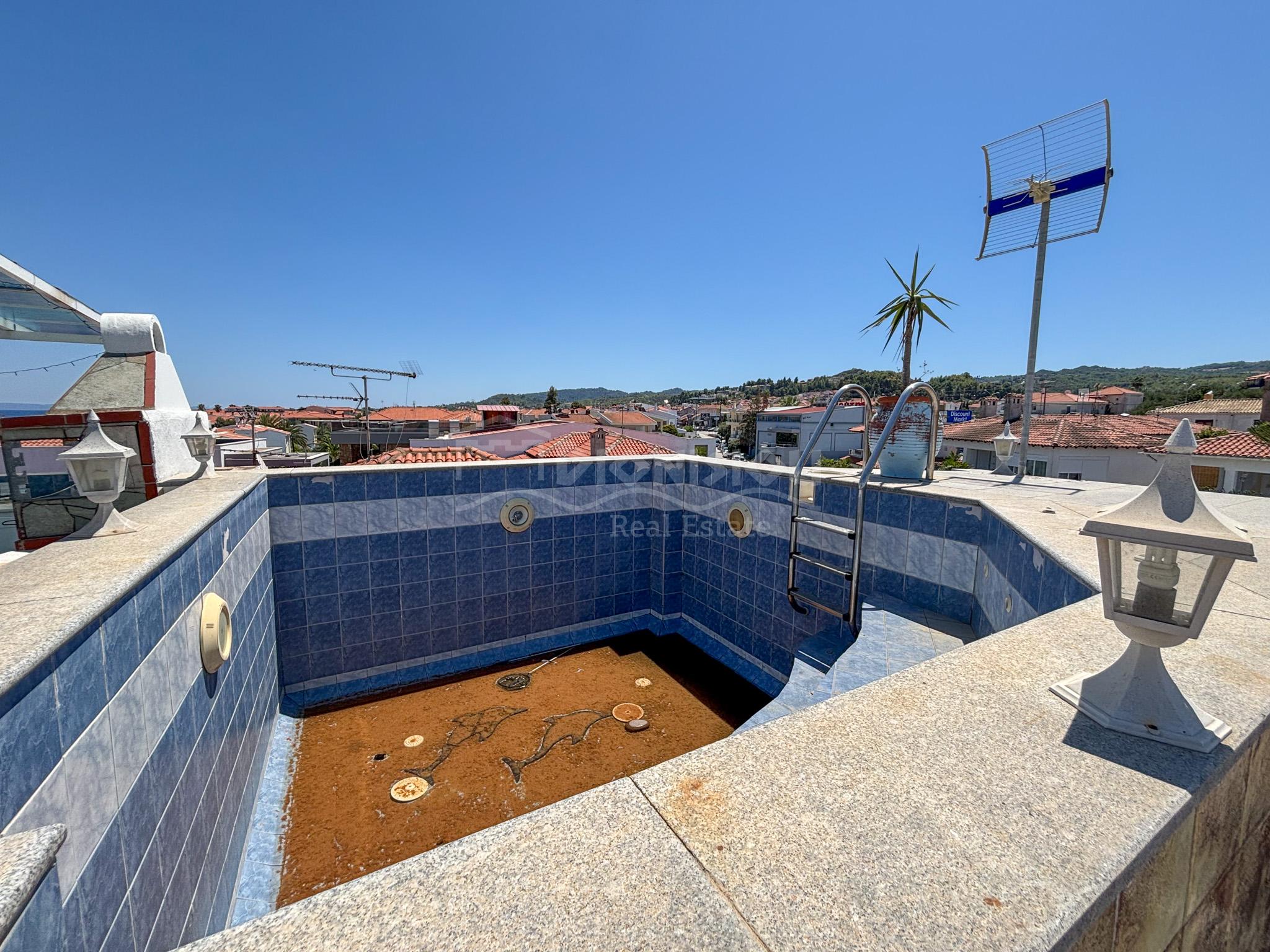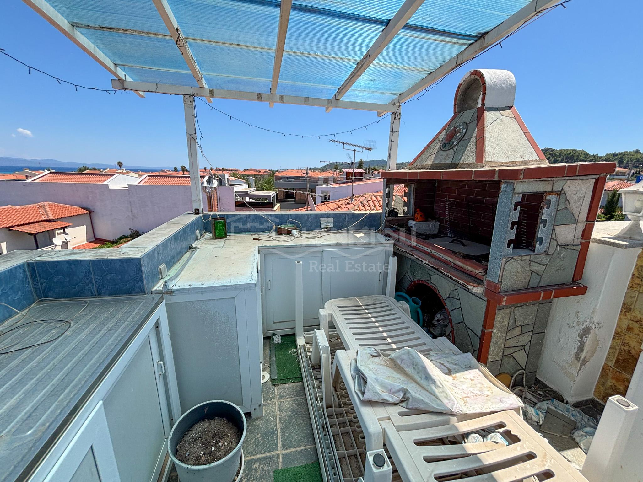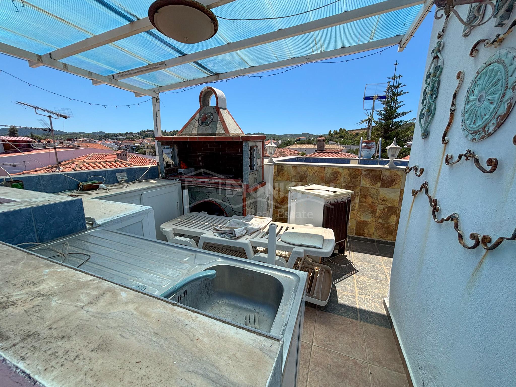 Дом находится в центре поселка Певкохори всего в 150 метрах от прекрасного пляжа.