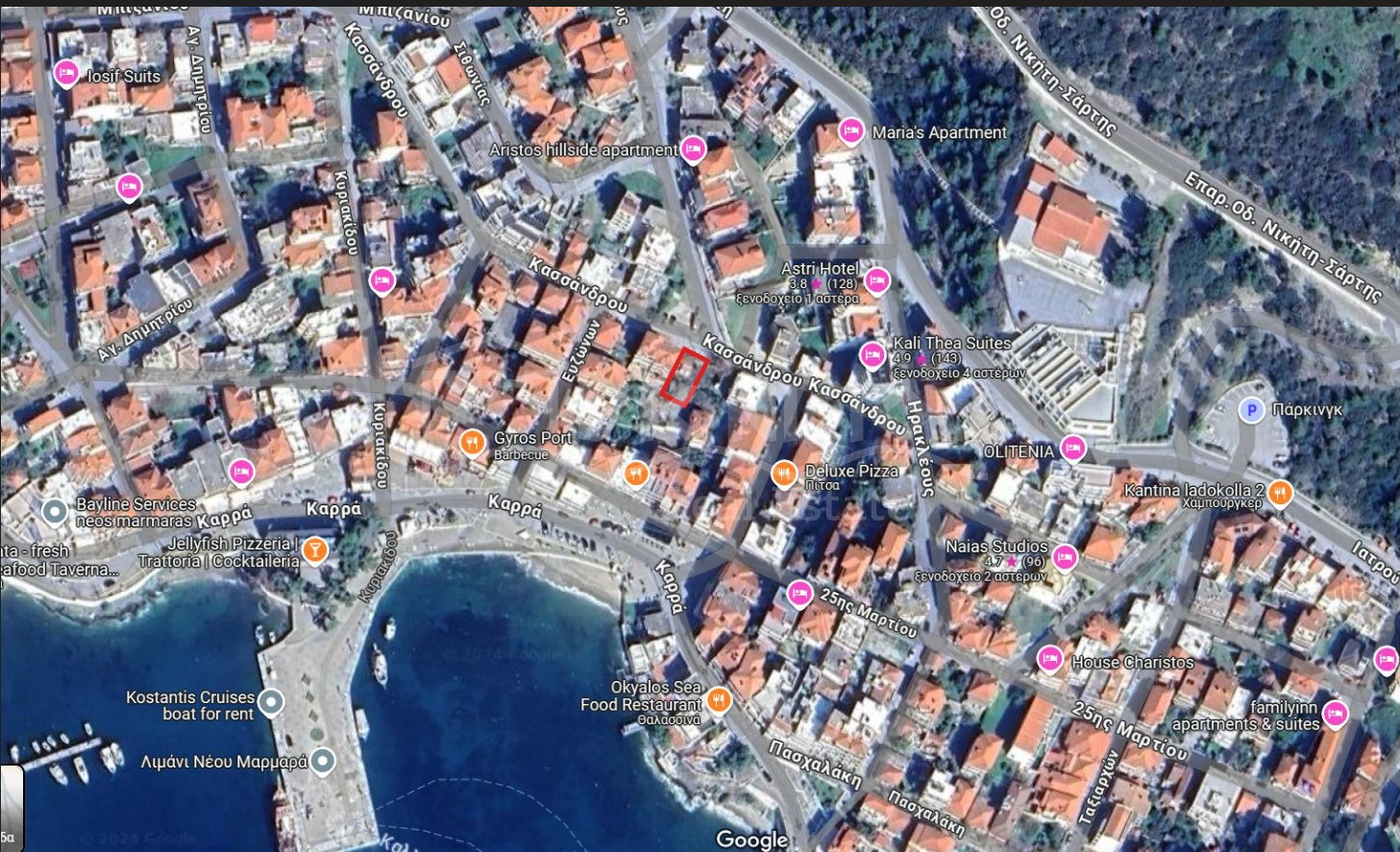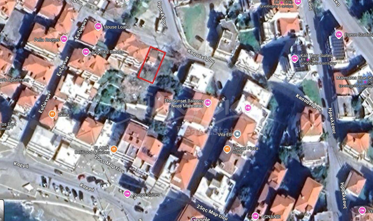 Земельный участок площадью 131 кв. метра находится в поселке Неос Мармарас 160 метров от пляжа.