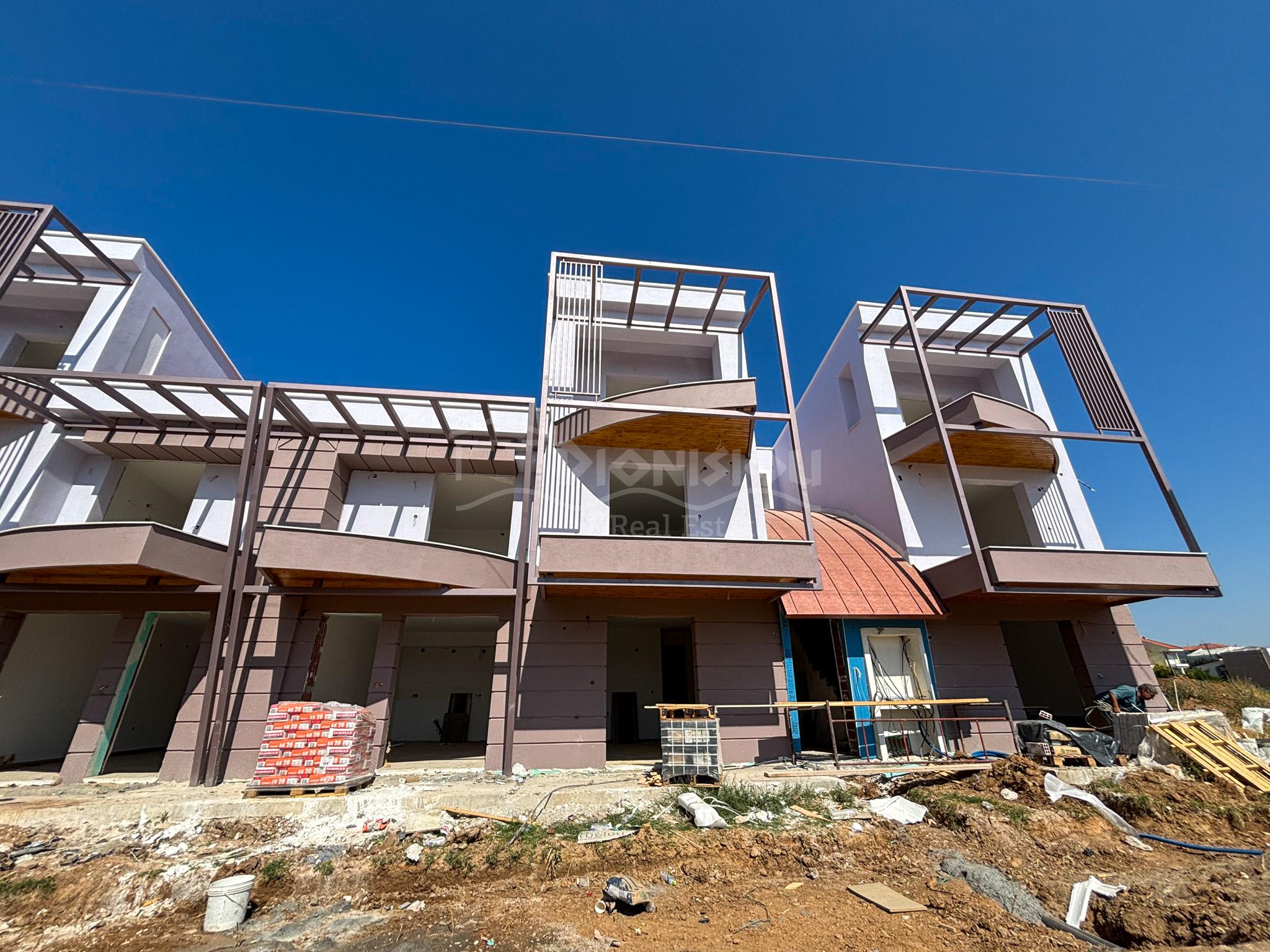 Танхаусы расположены в популярном у жителей Салоник и Северной Греции поселке Флогита с широким песчаным пляжем и множеством таверн и пляжных баров всего в 130 метрах от пляжа.