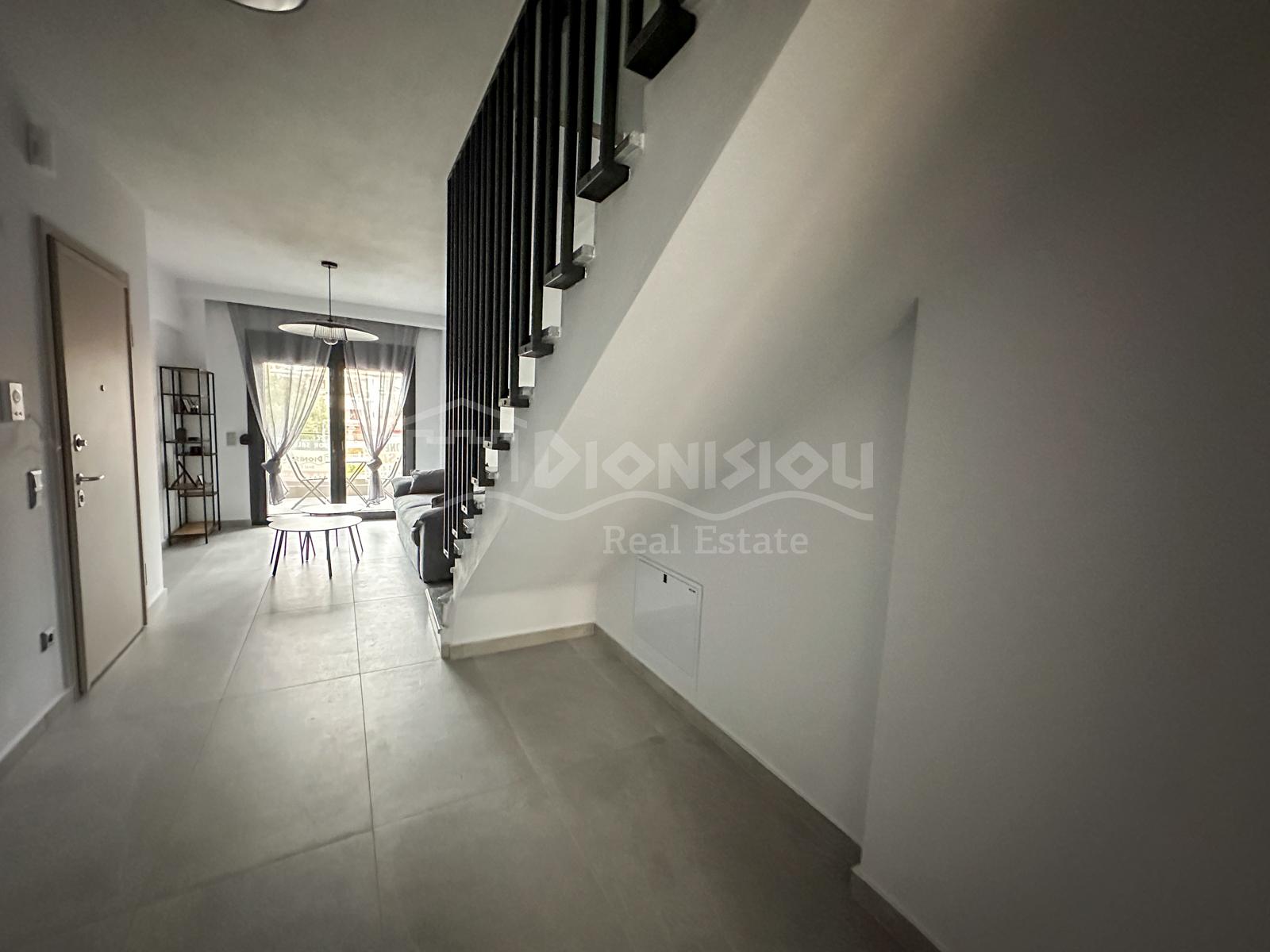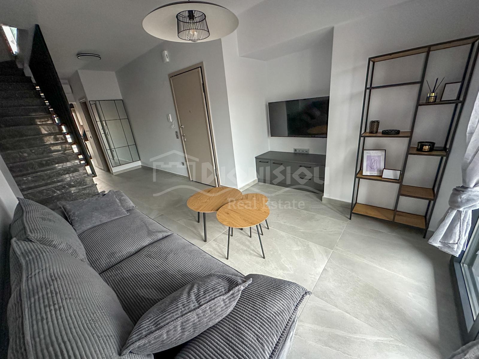 Двухуровневый апартамент находится в городке Неа Муданья в районе Элеонас в 400 метрах от широкого песчаного пляжа, отмеченного Голубым Флагом.