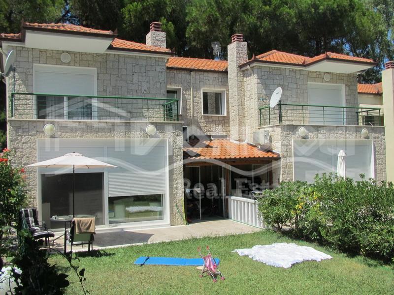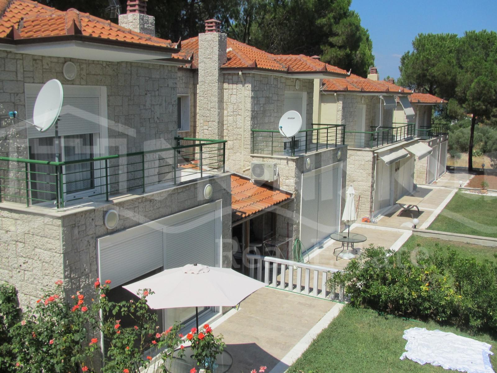Полностью меблированный таунхаус находится в популярном туристическом поселке Ханиоти всего в 200 метрах от песчаного пляжа.