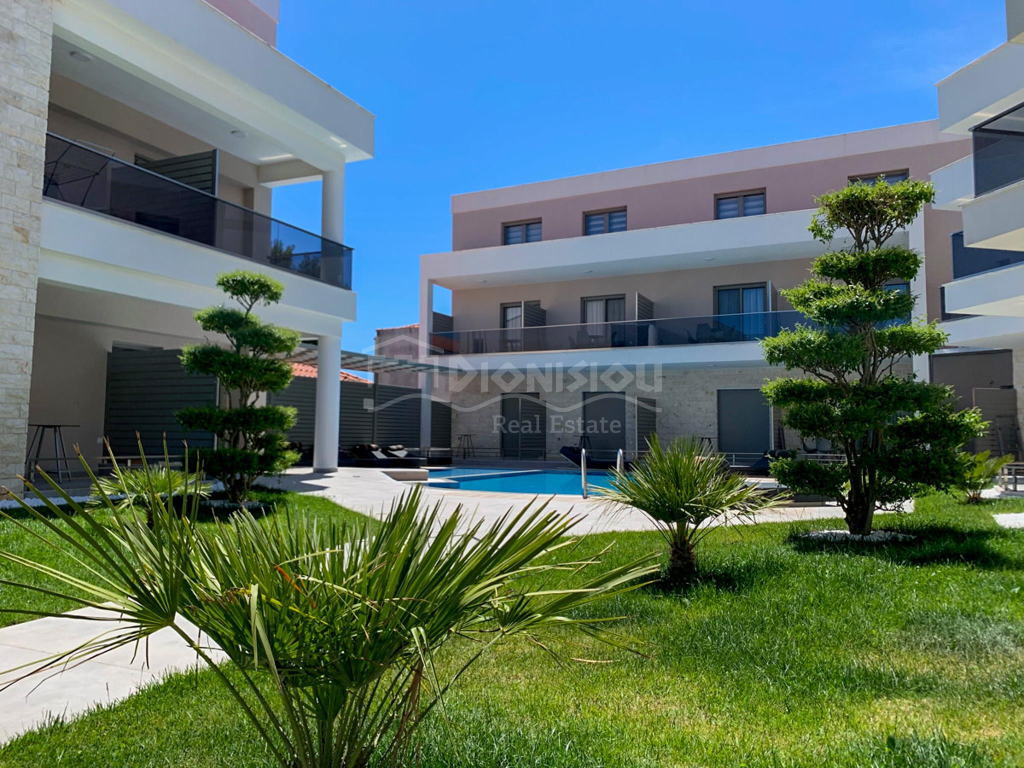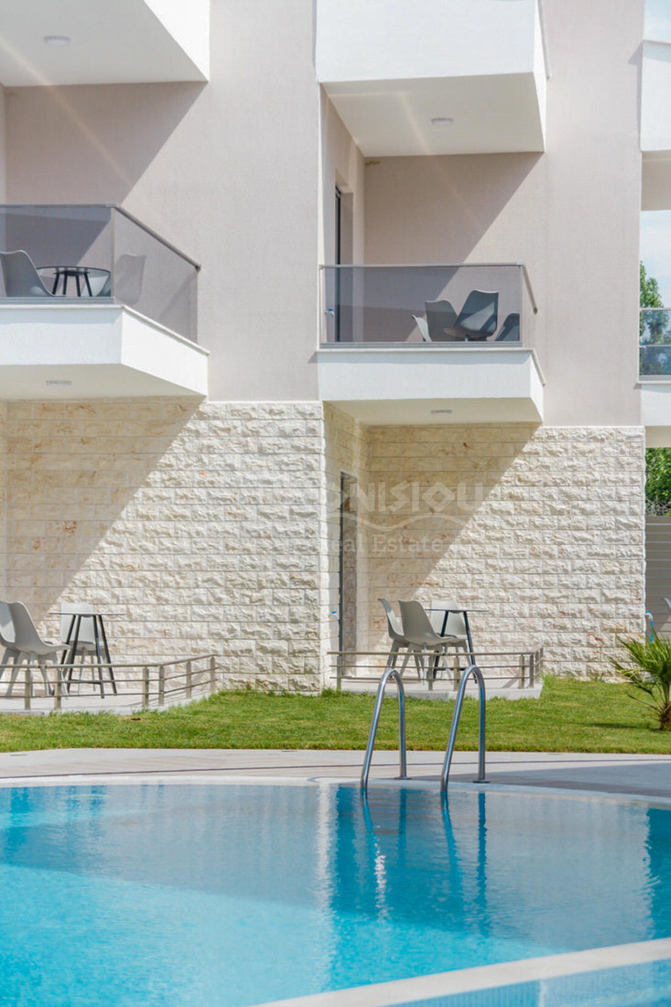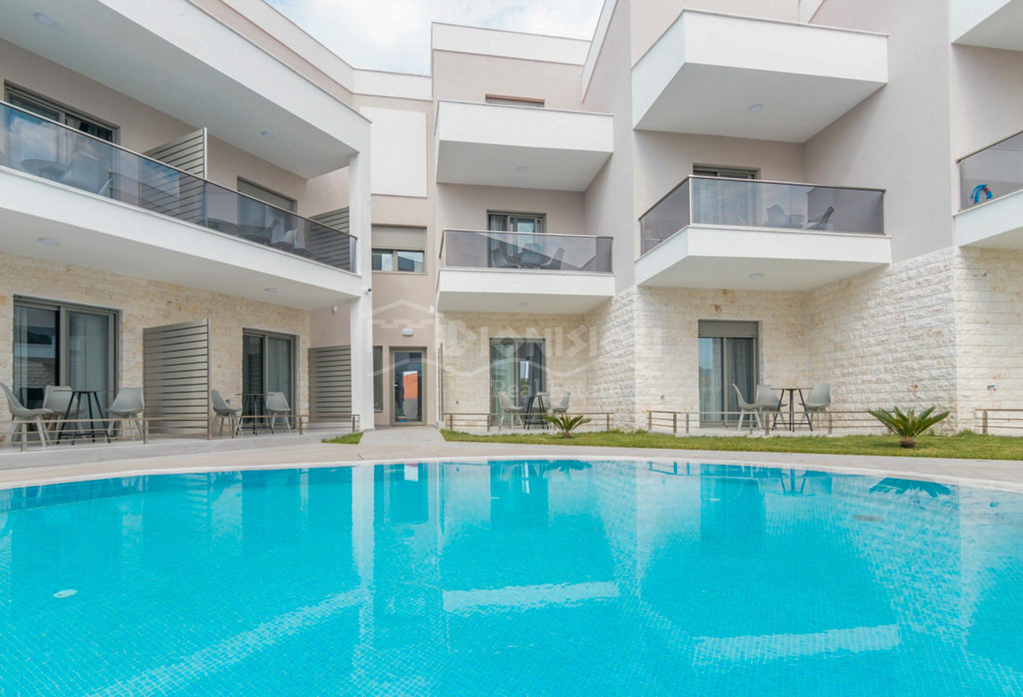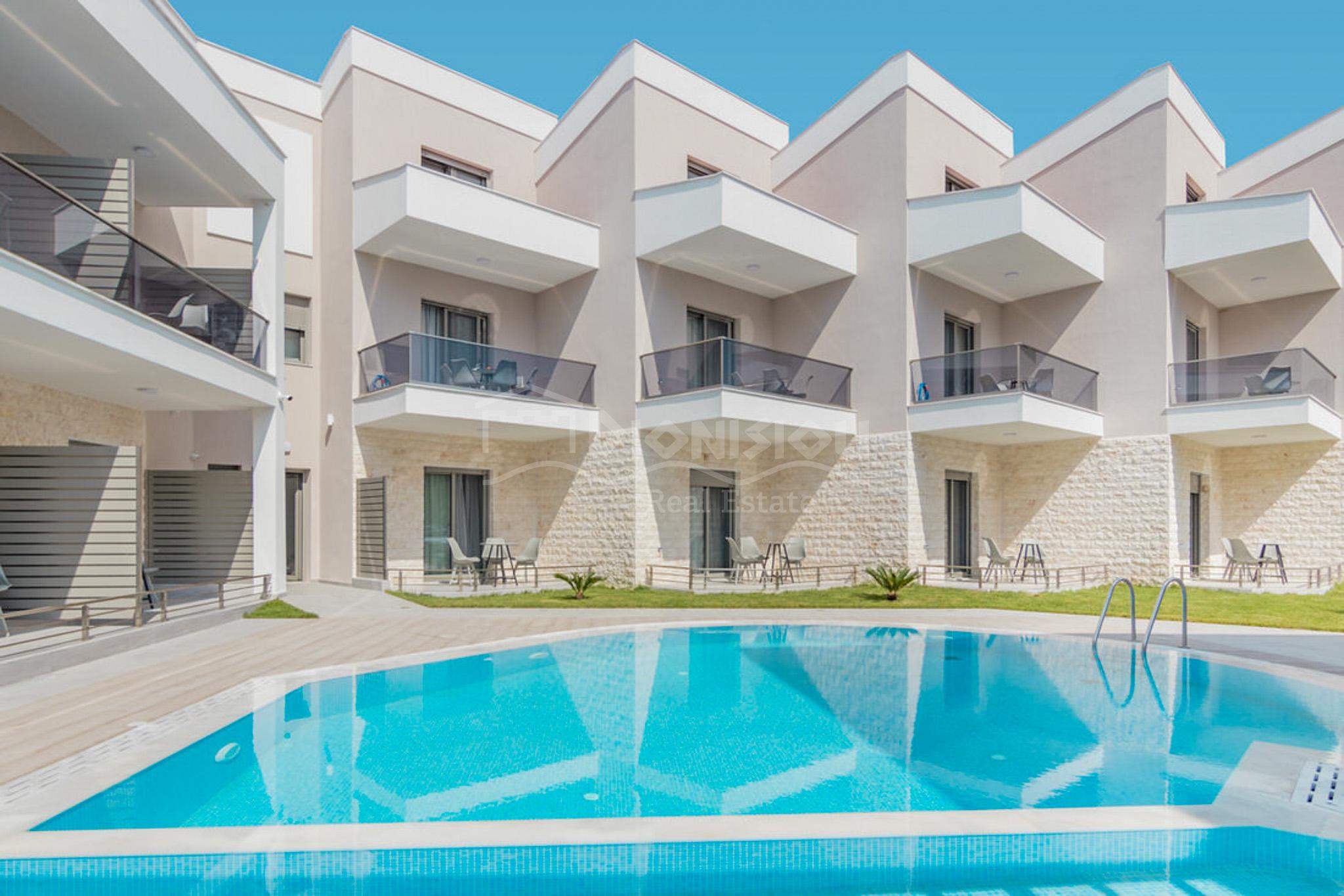 Строящийся отель расположен в популярном поселке Никити всего в 50 метрах от прекрасного живописного пляжа.