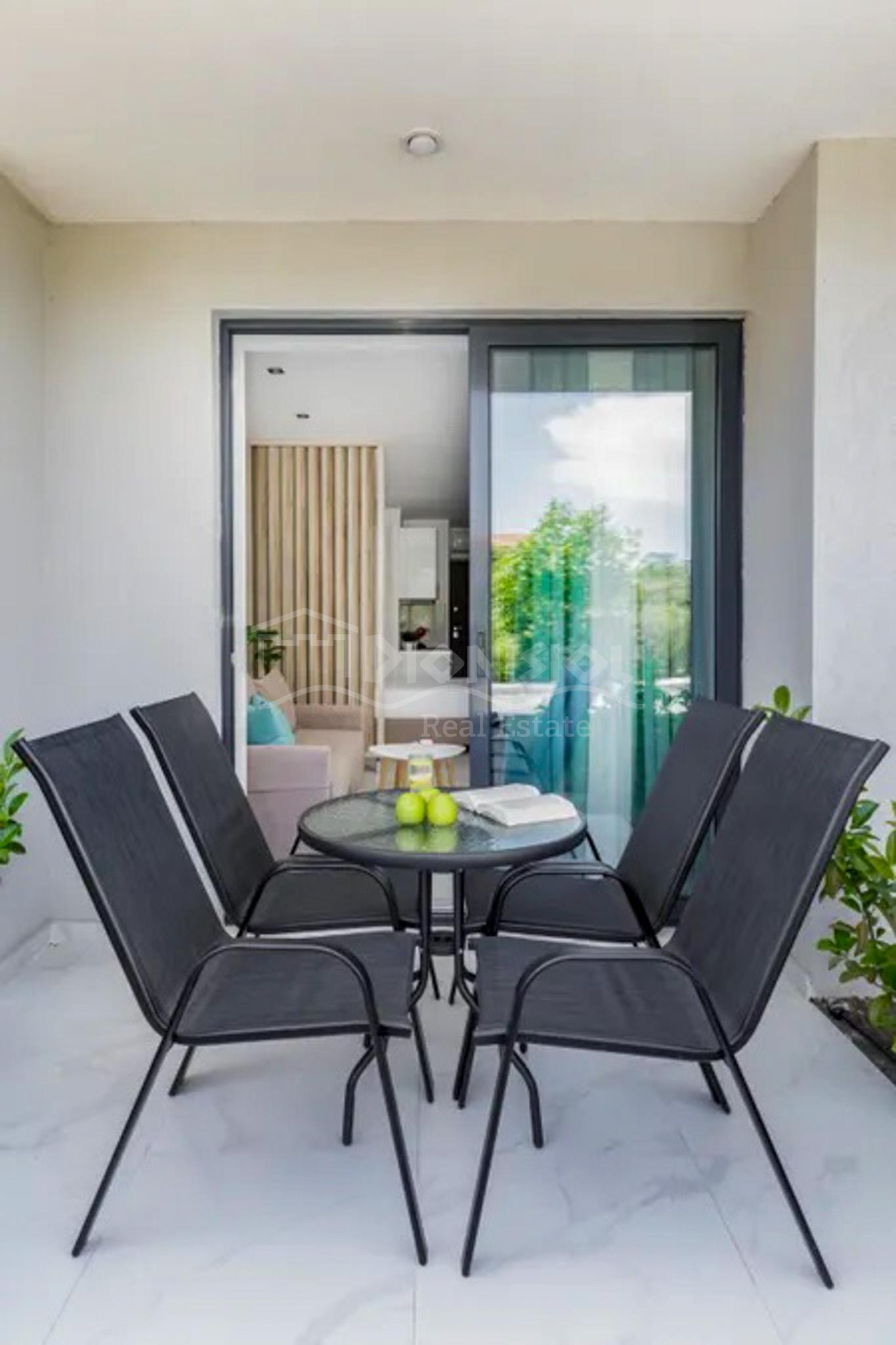 Студии находятся на 1-ом этаже и состоят из кухни, открытого пространства, ванной комнаты и веранды.