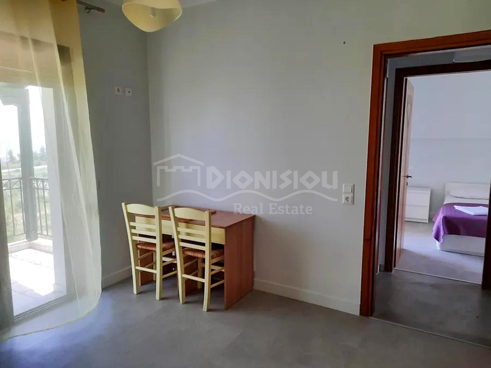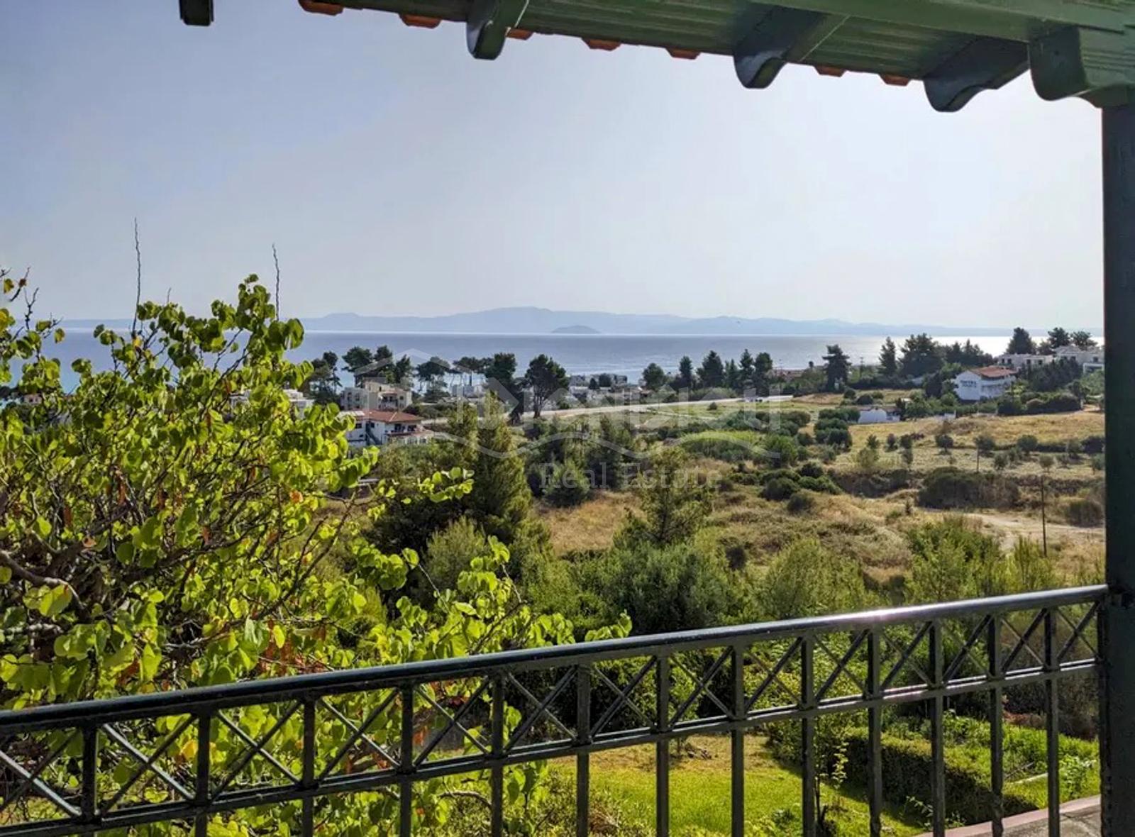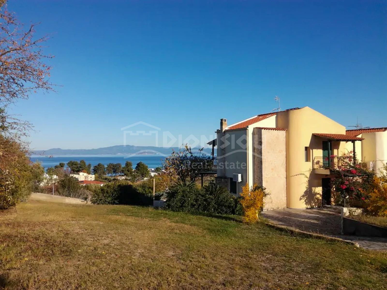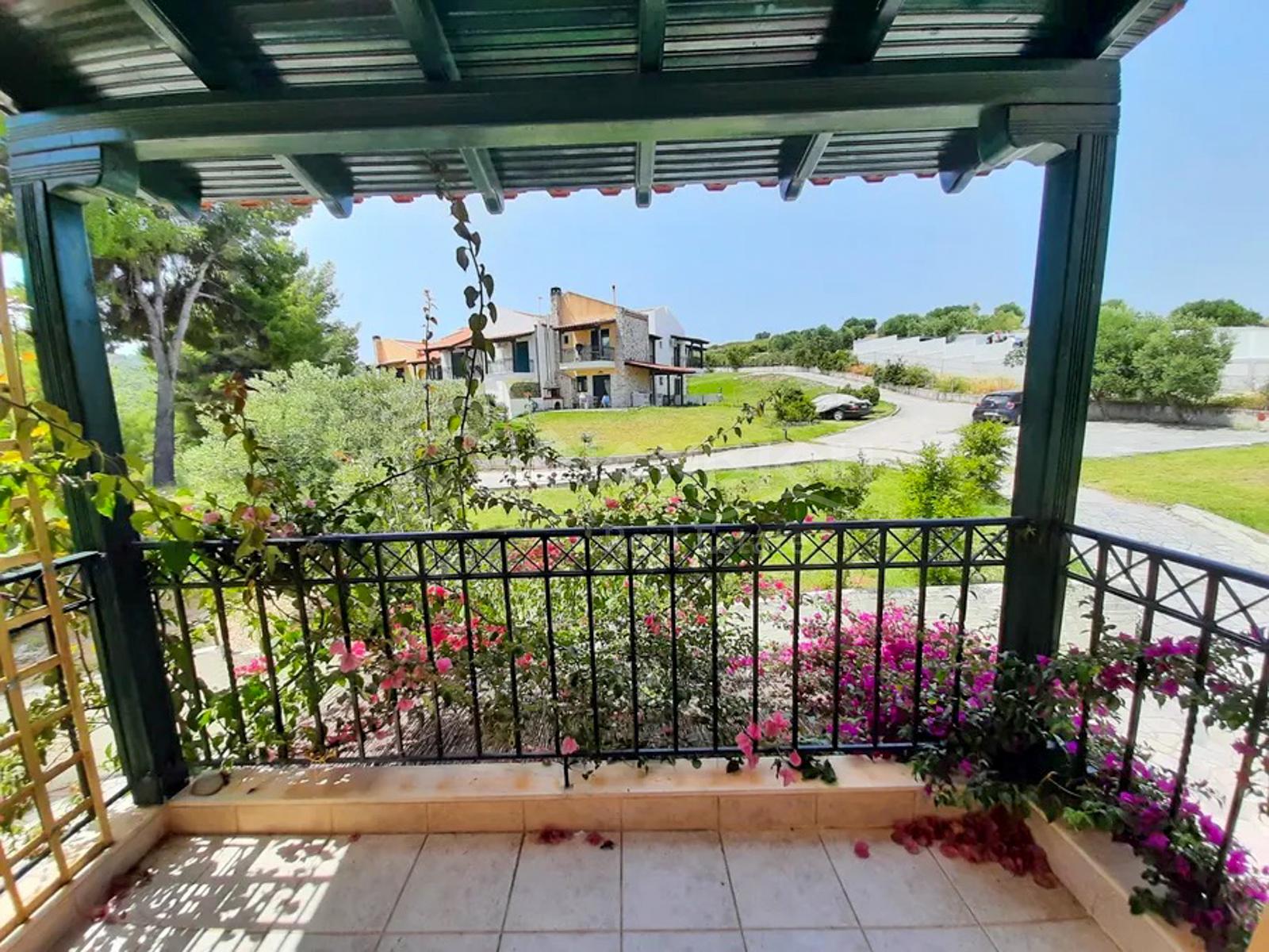 Этот мезонет в Ханиоти (Кассандра, Халкидики) идеально подходит для тех, кто хочет жильё с видом на море в комплексе с бассейном в популярном туристическом посёлке.