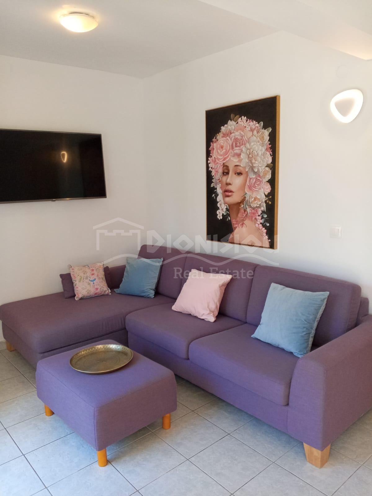 Вход осуществляется на 2-ой этаж, где расположена гостиная, кухня и балкон с видом на море. На 1-ом этаже расположены 2 спальни и ванная комната. На 3-ьем этаже расположена мастер-спальня, маленькая спальня, ванная комната и балкон с видом на море.