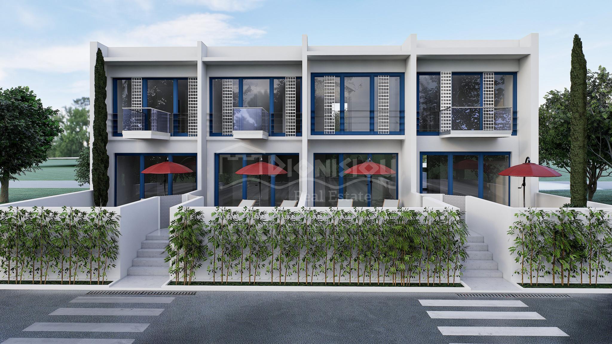 Таунхаусы расположены в популярном у жителей Салоник и Северной Греции поселке Флогита с широким песчаным пляжем и множеством таверн и пляжных баров всего в 150 метрах от пляжа.