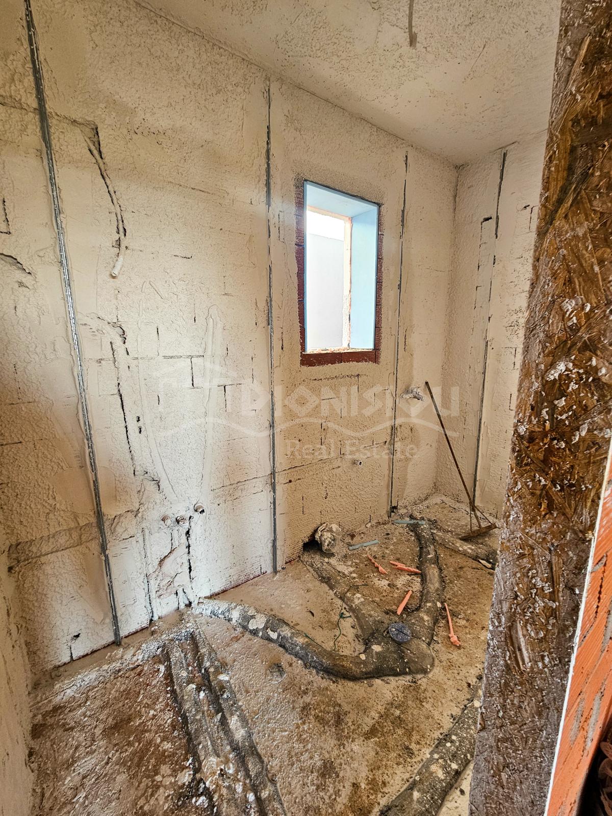 На 1-ом этаже находится гостиная с кухней, спальня, ванная комната и веранда. На 2-ом этаже находятся 2 спальни, ванная комната и кладовая, которая может использоваться как 4-ая спальня или гардеробная.